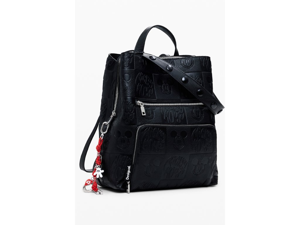 Dizajn a Detaily: Povrch batohu je zdobený vzorom Mickey Mouse v reliéfe, ktorý pridáva batohu unikátny vzhľad. Kontrastné detaily a logo dodávajú módnu dynamiku.