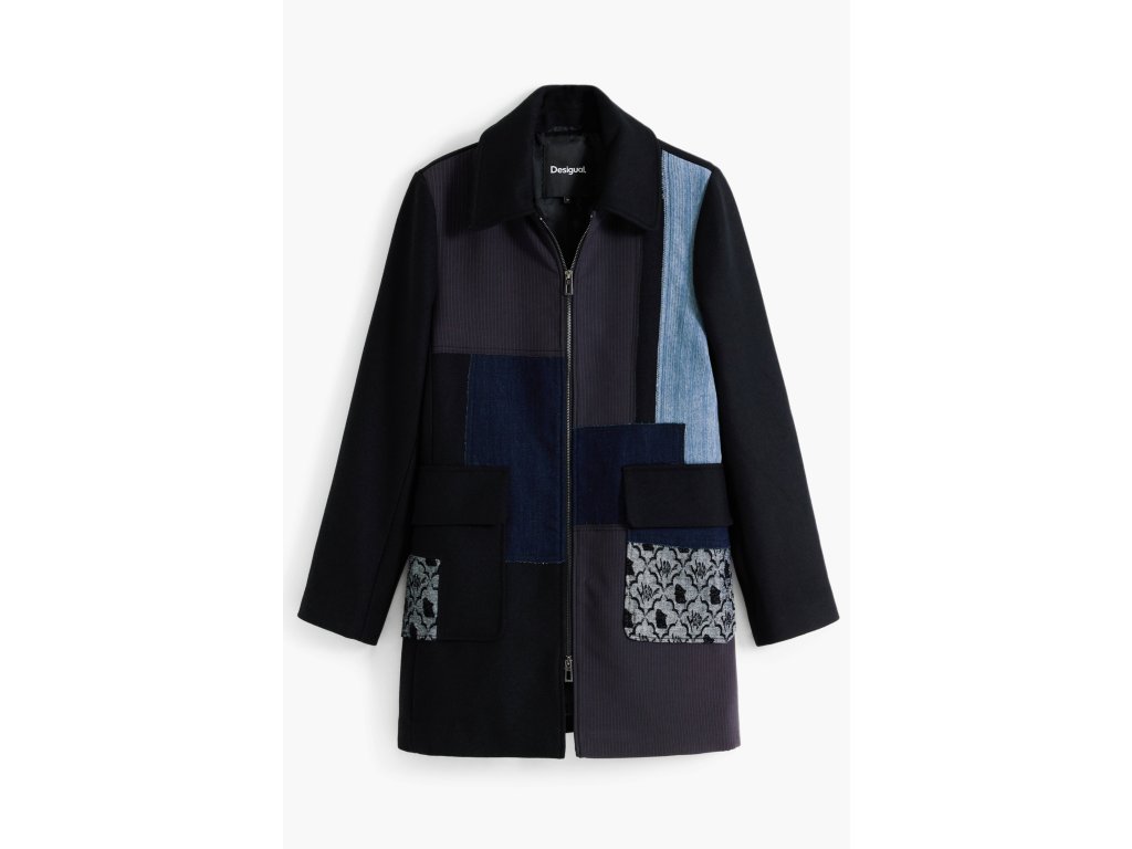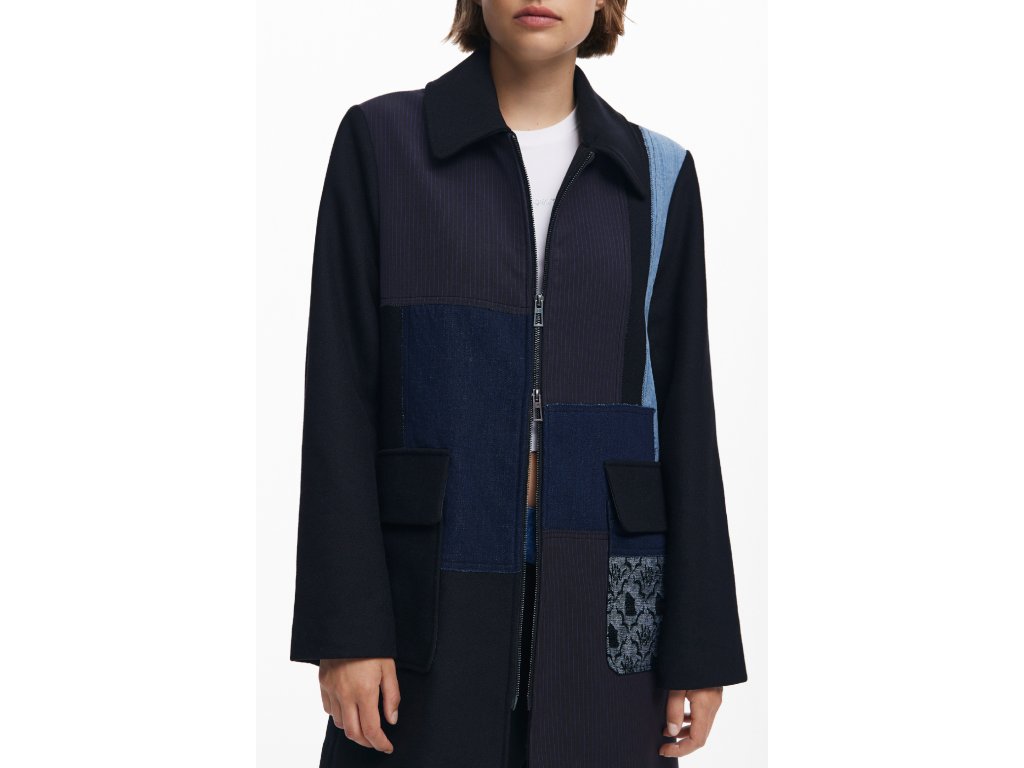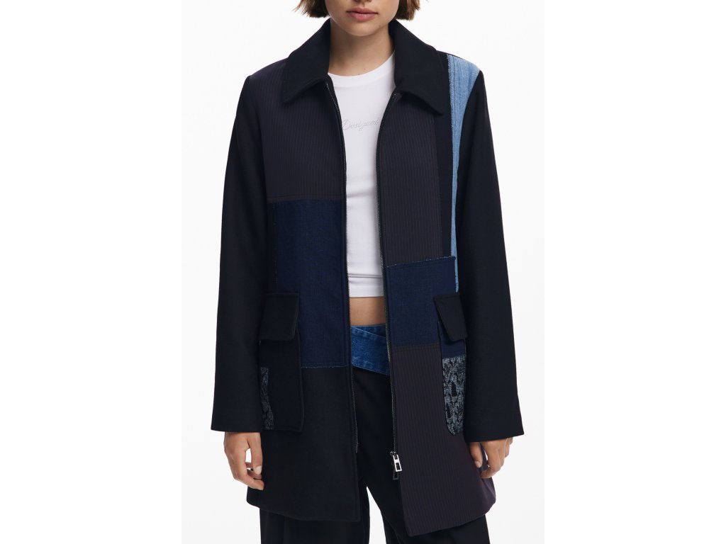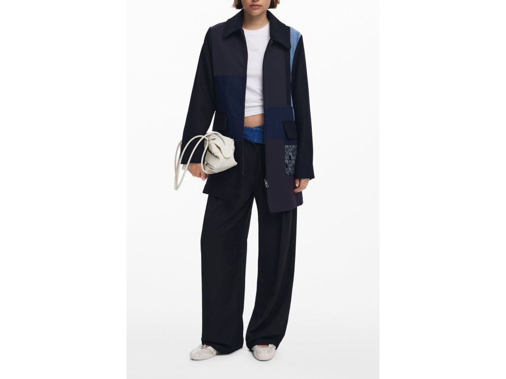 Kabát disponuje dvoma priestrannými vreckami, ktoré sú nielen štýlovým doplnkom, ale aj praktickým miestom na uschovanie vašich drobností. Detailné kontrasty pruhovaných a jednofarebných materiálov vytvárajú jedinečný vzhľad, ktorý priláka pozornosť.