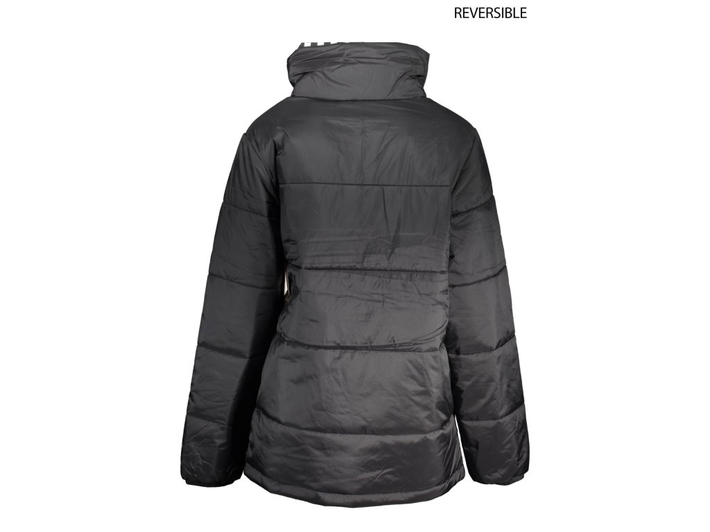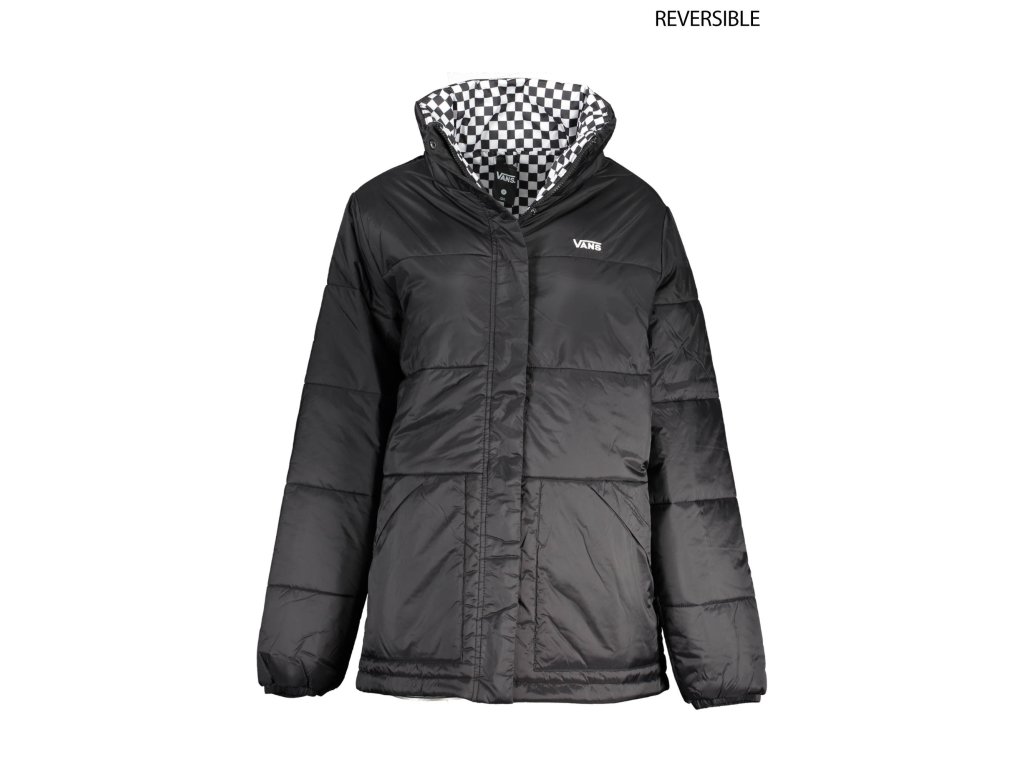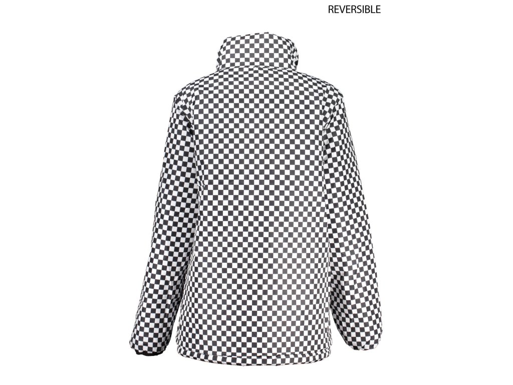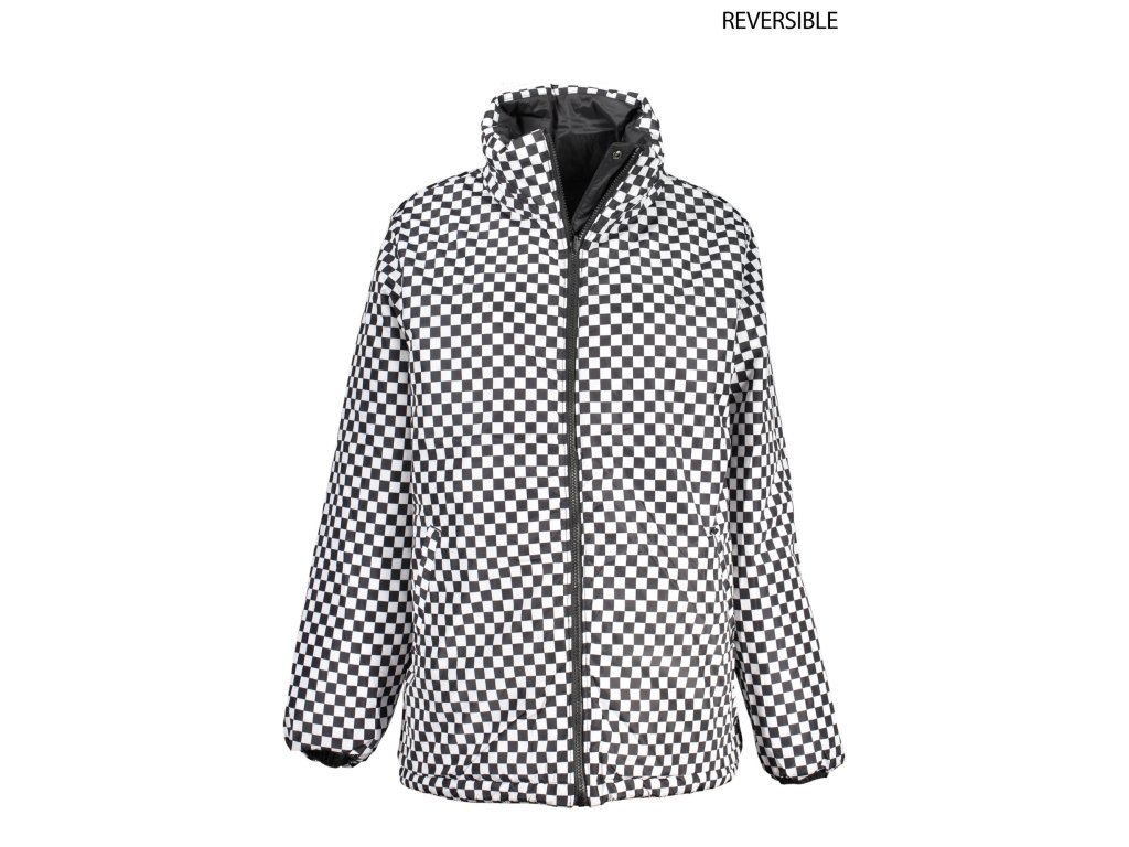 giubbotto maniche lunghe, revesibile, nero/a quadri bianco nero, 2 tasche esterne, 2 tasche interne, bottoni, zip, ricamo, impermeabile, logo