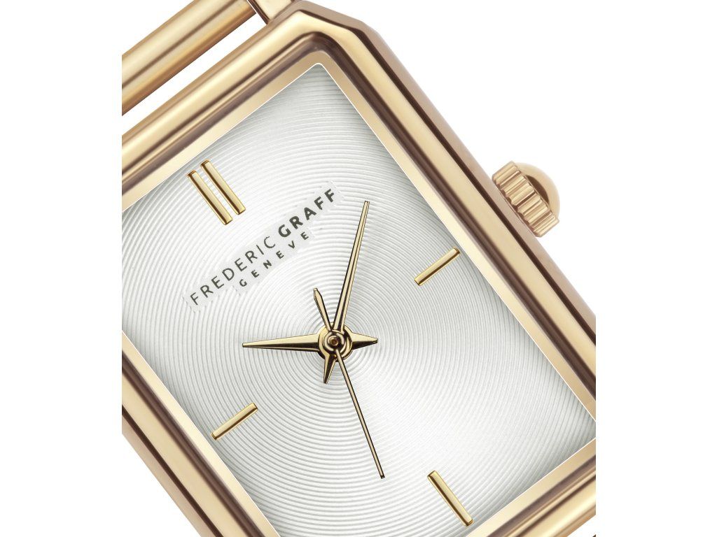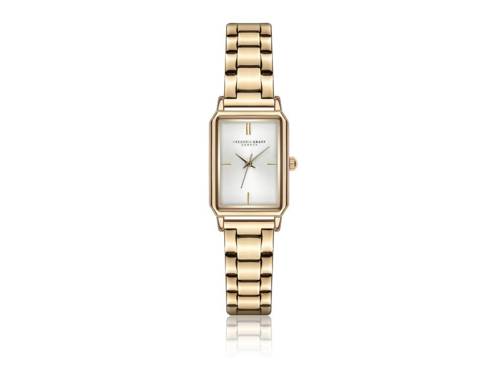 Slušná elegancia v zlatom tóne. Dámske hodinky Frederic Graff FDT-4214GQ zaujmú harmonickou kombináciou bieleho ciferníka a jemného zlatého prevedenia. Hranaté puzdro dodáva modelu moderný vzhľad a podčiarkuje jeho nadčasový charakter.