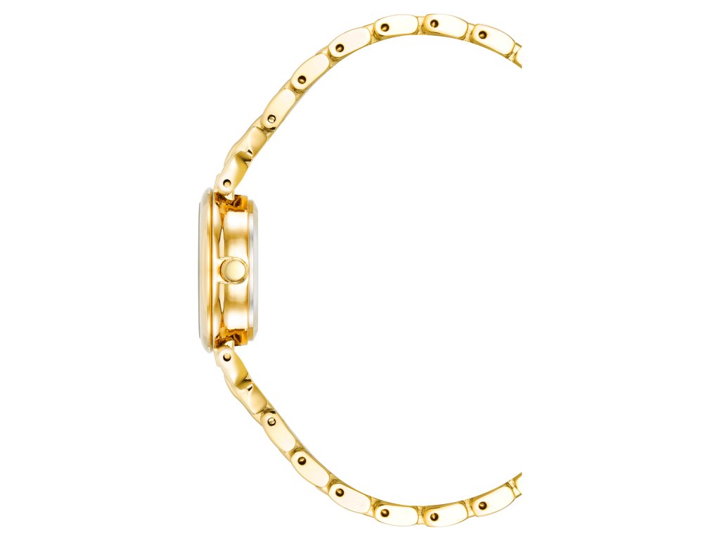 Hodinky a náramok sú vyrobené z kovu zlatej farby. Biely okrúhly ciferník s priemerom 24 mm zdobia klasické rímske číslice v čiernej farbe. Elegantné zlaté ručičky potom dokonale ladia s celkovým vzhľadom hodiniek. Hodinky poháňa presný a spoľahlivý strojček Quartz, ktorý je celosvetovo známy svojou presnosťou. Ciferník je chránený proti poškriabaniu a poškodeniu minerálnym sklíčkom. Hodinky tak zostanú krásne po dlhú dobu.