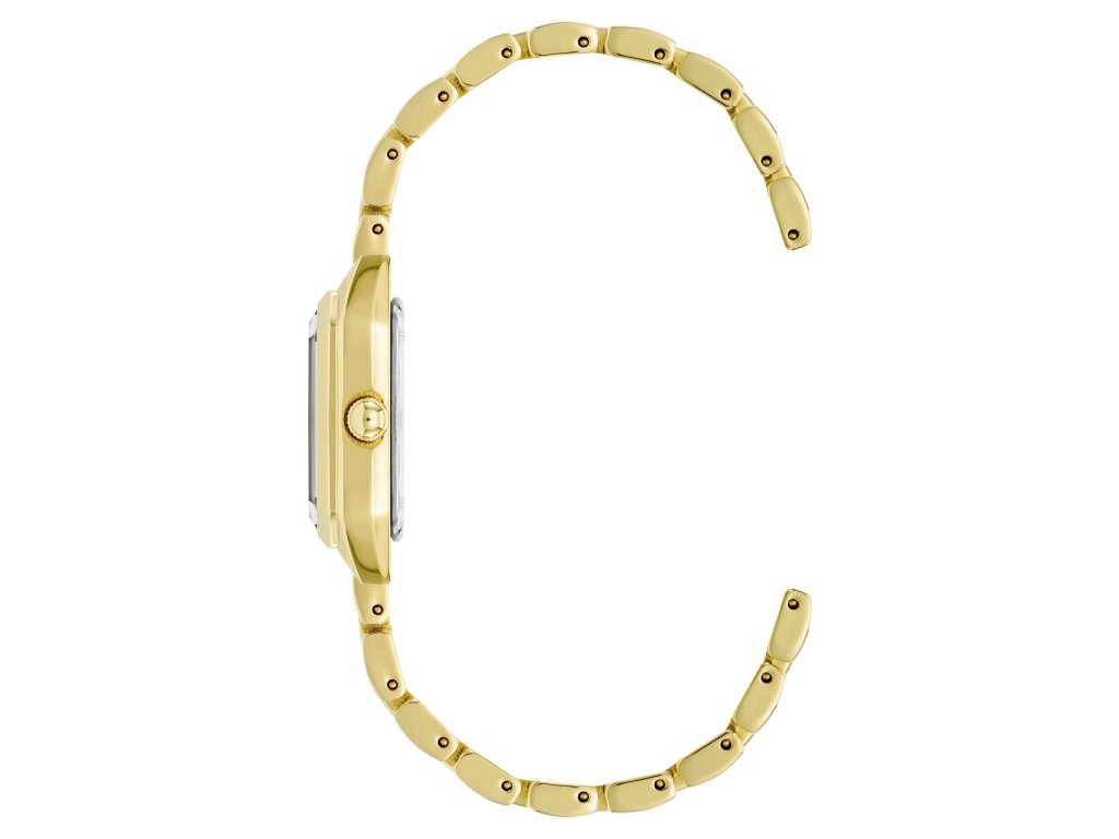 Tento model sa vyznačuje kovový ťahák zlatej farbyčo zaručuje úplné pohodlie pri nosení. Čierny ciferník lemuje štvorcové puzdro zlatej farby. To vytvára výrazný kontrast. Na ciferníku sú zlaté ručičky a indexy, ktoré výrazne uľahčujú sledovanie času a dodávajú hodinkám šarm a eleganciu.