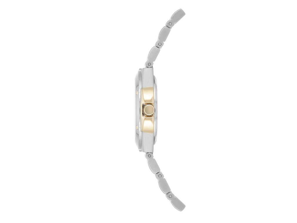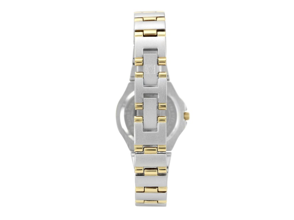 Model má dvojfarebný metalický ťah, ktorý kombinuje strieborné a zlaté tóny. Okrúhle puzdro v striebornej farbe dopĺňa čistý ciferník v rovnakom odtieni.Hodinky sú chránené odolným minerálnym sklíčkomčo pomáha udržiavať ich vzhľad bez poškriabania. Vďaka analógovému displeju aspoľahlivý pohyb Quartz sa stane praktickým a nadčasovým doplnkom každej elegantnej ženy.