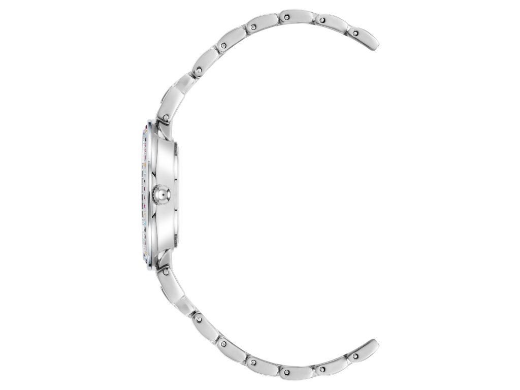 Model má strieborný kovový ťah a okrúhle puzdro v striebornej farbe, ktorá plynule nadväzuje načisto strieborný ciferník s kryštálmi namiesto indexov.Minerálne sklo chráni hodinky pred poškriabaním a spoľahlivý Quartzový mechanizmus zabezpečuje presnú a tichú prevádzku. Skvelá voľba pre ženy, ktoré hľadajú elegantný doplnok v neutrálnom, nadčasovom štýle.