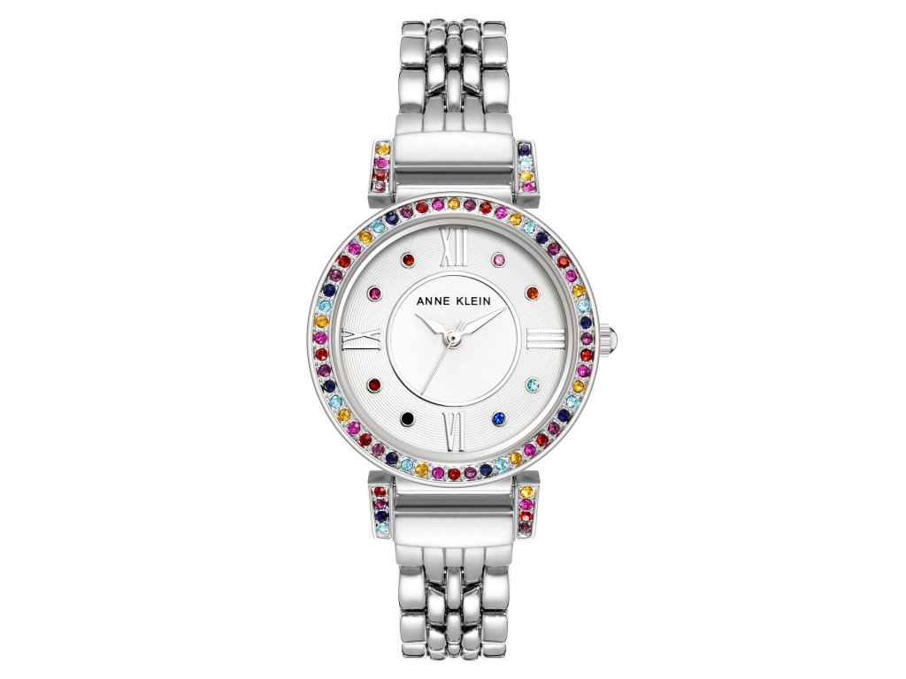 Hodinky Anne Klein v celostriebornej farbe zaujmú svojou čistotou a jemným leskom.Strieborný ciferník zdobený jemnými kryštálmi vytvára harmonický celok s puzdrom a strojčekomčo z tohto modelu robí univerzálny a vkusný doplnok.