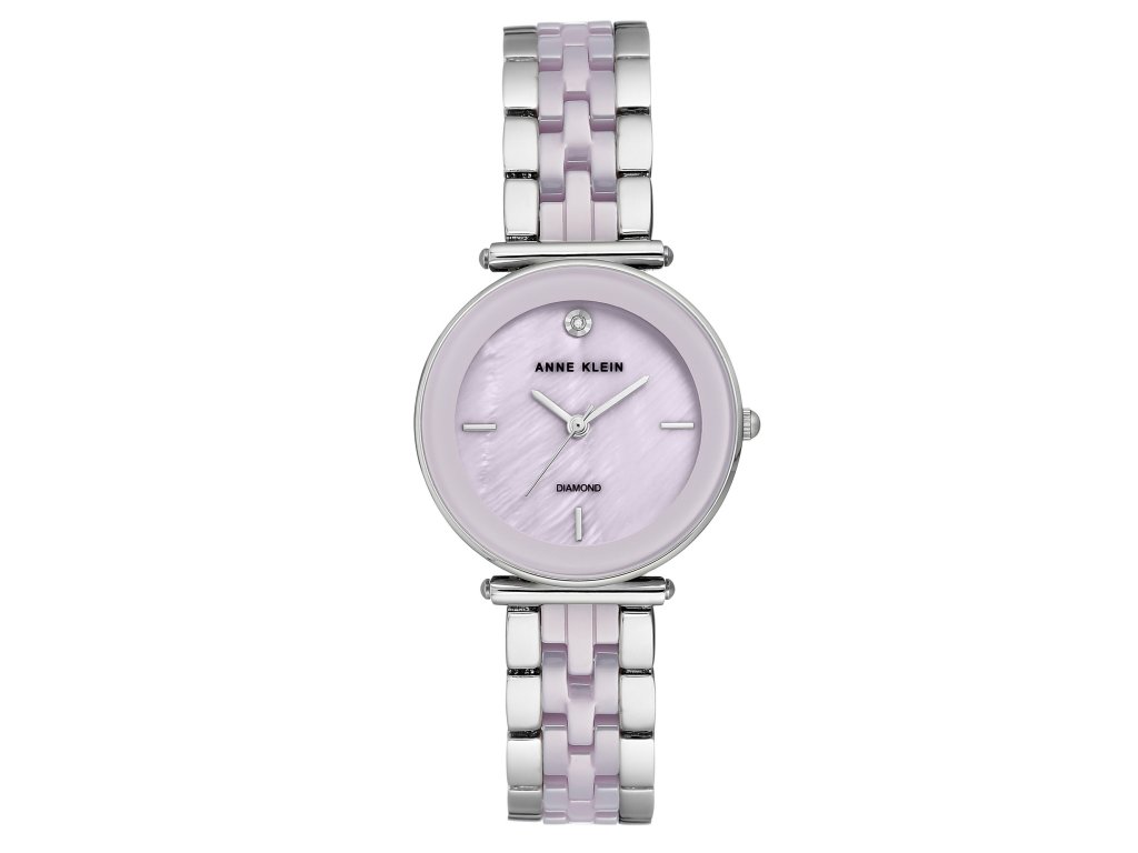 Hodinky Anne Klein s fialovým ciferníkom zaujmú ženy, ktoré hľadajú neotrelý, ale elegantný doplnok.Decentný diamant na pozícii 12 hodín dodáva ciferníku šperkbez narušenia čistého dizajnu.