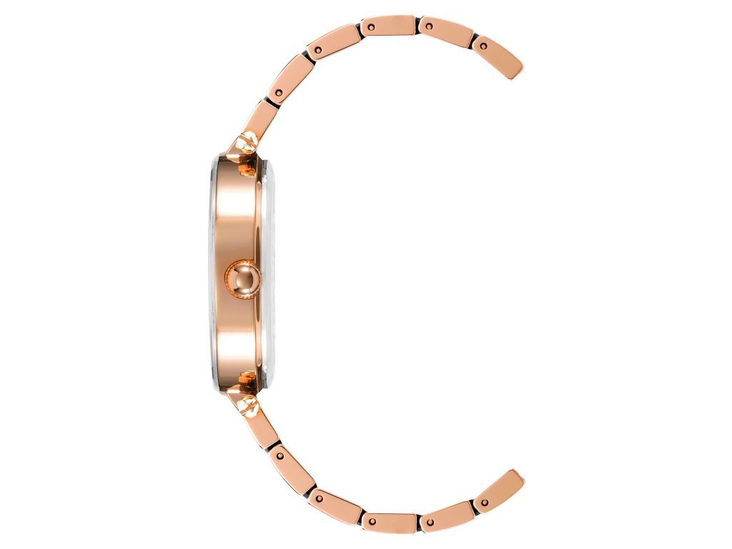 Model má dvojfarebný kovový ťah v kombinácii ružového zlata a tmavej farbyktorá sa hodí kokrúhle puzdro z ružového zlata a tmavomodrý ciferník. Kryštály namiesto indexov dodávajú hodinkám šperkový nádych bez preháňania.Minerálne sklo chráni ciferník pred poškriabaním a Quartzový mechanizmus zabezpečuje presnú prevádzku. Ideálne pre ženy, ktoré hľadajú štýlový, kontrastný a elegantný doplnok s jemným leskom.