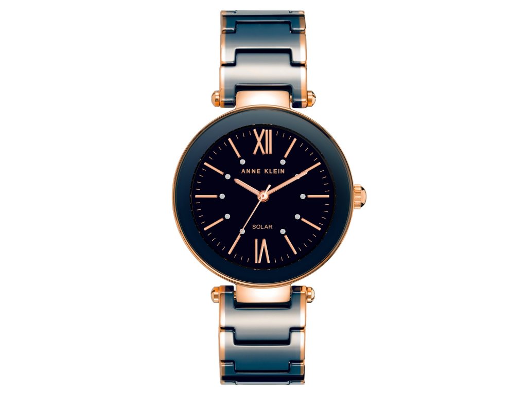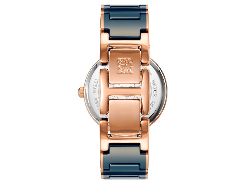Hodinky Anne Klein upútajú pozornosť výraznými farbami a jemnými detailmi.Modrý ciferník s kryštálmi vytvára sofistikovaný kontrast k ružovozlatému puzdru a dvojfarebnému mechanizmu, čo z modelu robí elegantný a moderný doplnok.