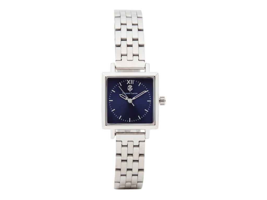 Dámske hodinky CXL by Christian Lacroix spájajú modernú eleganciu, čisté geometrické línie a výrazný farebný kontrast. Tmavomodrý ciferník dodáva modelu hĺbku a sofistikovanosť, zatiaľ čo štvorcové strieborné puzdro pôsobí štýlovo a nadčasovo.