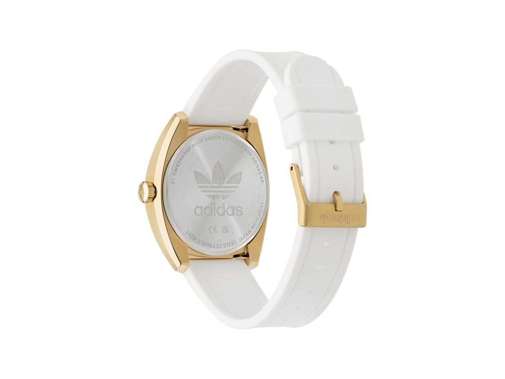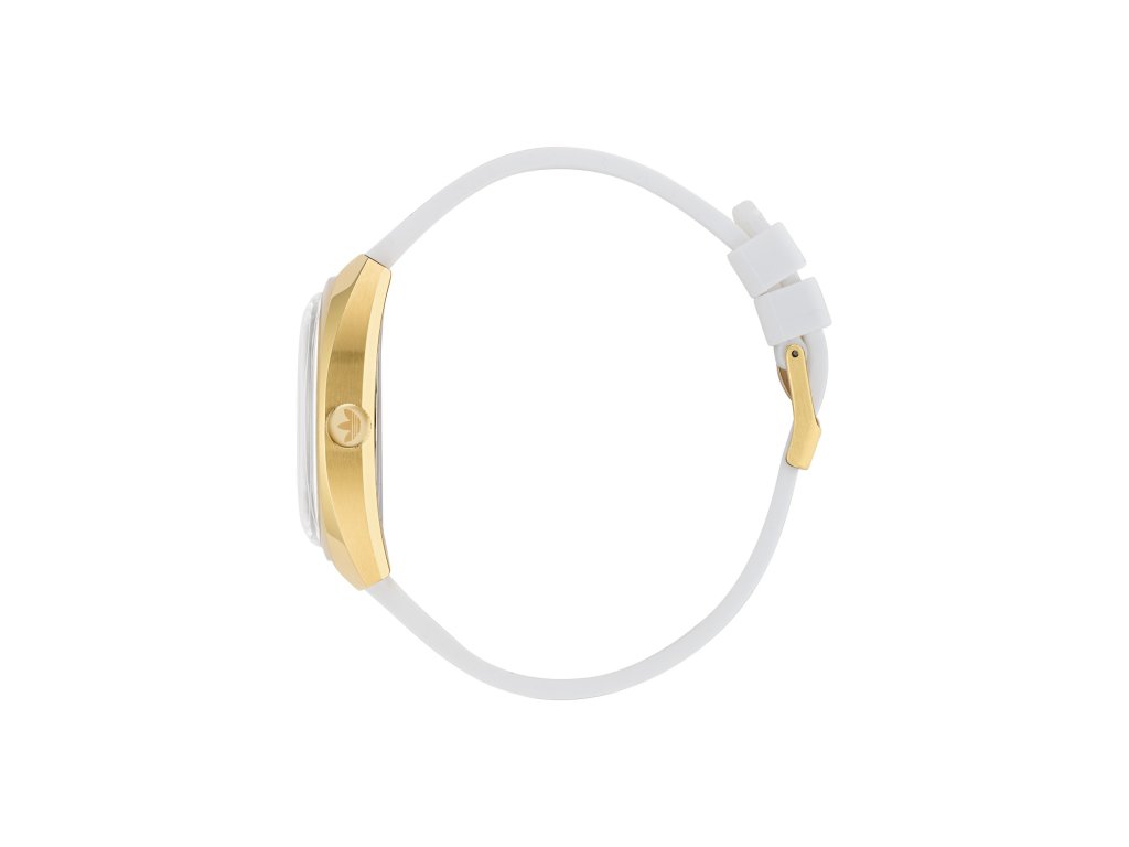 Dámske hodinky Adidas Originals Fashion Edition One AOFH23012 majú bielo-zlatý ciferník s jemnými detailmi a výrazným logom Adidas.