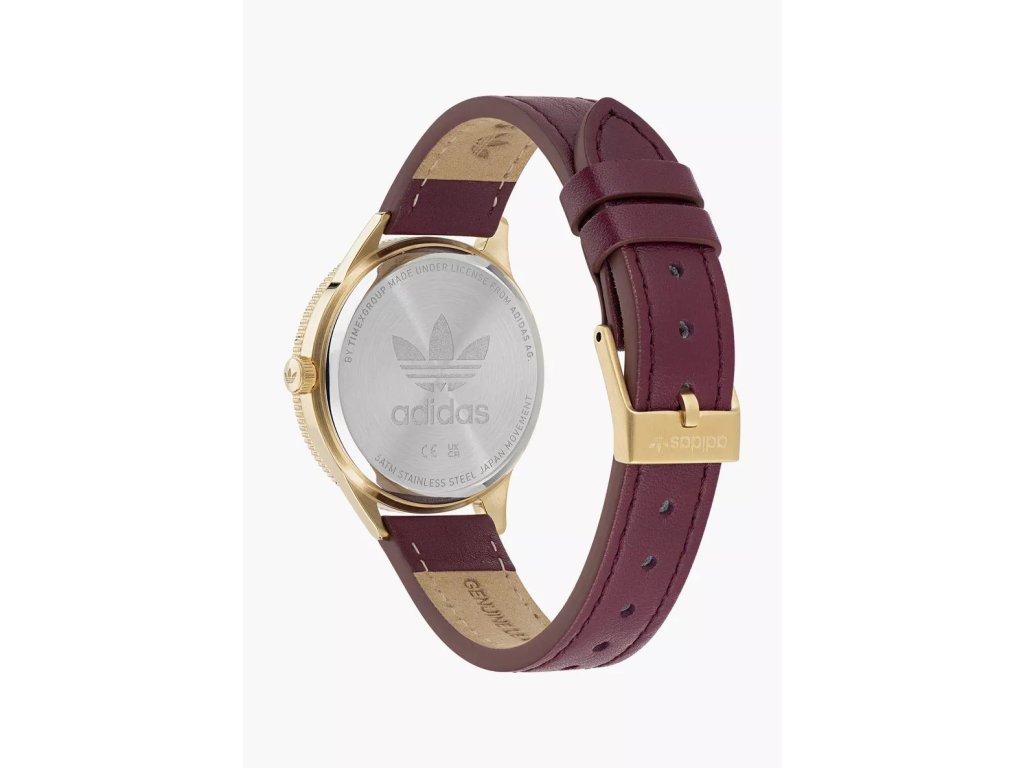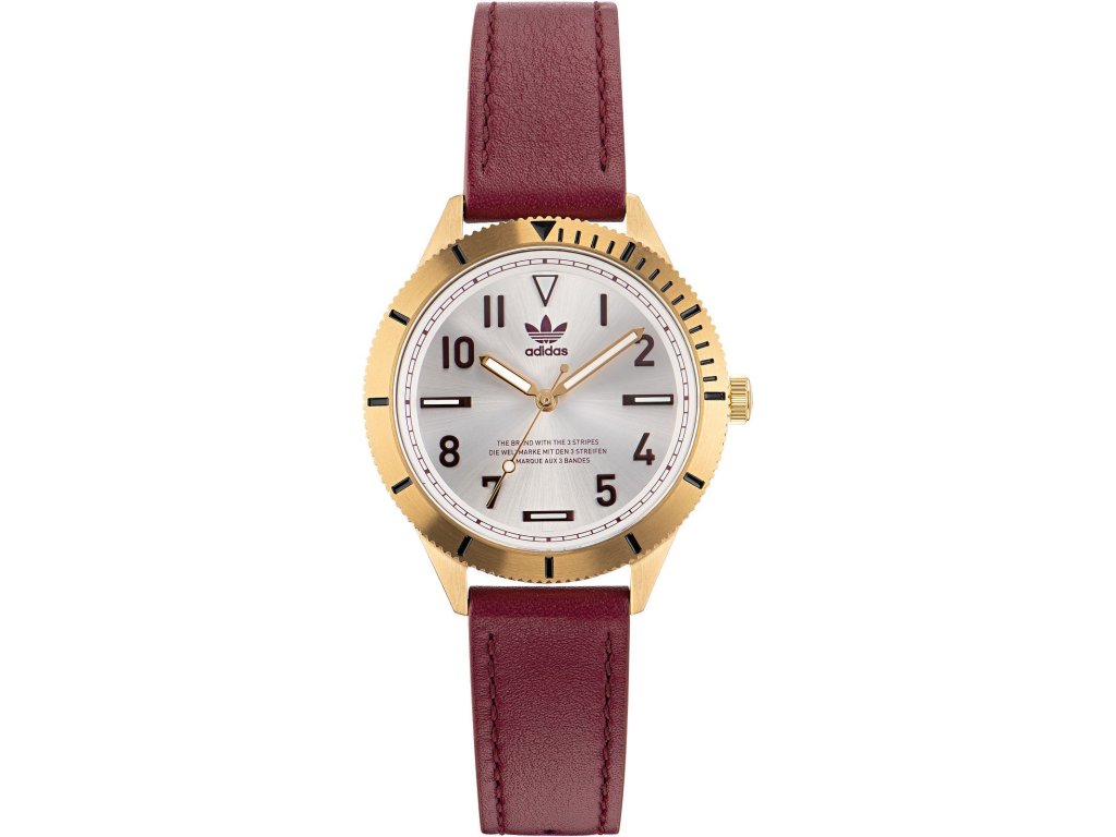 HODINKY ADIDAS WOMEN AOFH22570 (36MM). Typ mechanizmu: QUARTZ. Displej: HODINKY: ANALOGICKÉ. Materiál puzdra: MATERIÁL: NEHRDZAVEJÚCA OCEĽ. Farba puzdra: FARBA: ZLATÁ. Materiál náramku: MATERIÁL NÁRAMKU: KOŽA. Farba náramku: FARBA NÁRAMKU: ČERVENÁ. Farba ciferníka: FARBA CIFERNÍKA: ŠEDÁ. Typ skla: SKLÍČKO: MINERÁLNE. Kľučka: BUCKLE. Priemer ciferníka: dĹŽKA CIFERNÍKA: 36MM. Ponorný: 5ATM