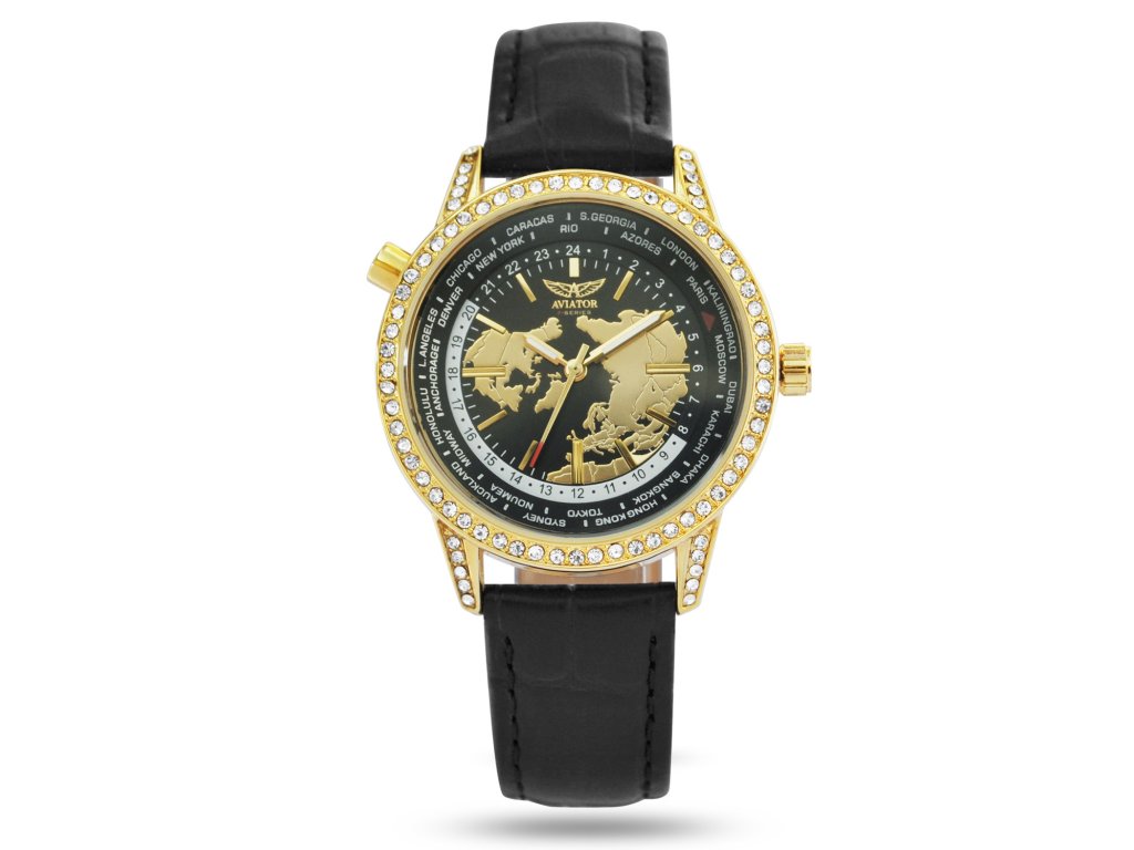HODINKY AVIATOR WOMEN AVW8633L03 (38MM). Typ mechanizmu: QUARTZ. Displej: HODINKY: ANALÓGOVÉ. Materiál puzdra: MATERIÁL: NEHRDZAVEJÚCA OCEĽ. Farba puzdra: FARBA: ZLATÁ. Materiál náramku: MATERIÁL NÁRAMKU: KOŽA. Farba náramku: FARBA NÁRAMKU: ČIERNA. Farba ciferníka: FAREBNOSŤ CIFERNÍKA: VIACFAREBNÁ. Typ skla: SKLÍČKO: MINERÁLNE. Kľučka: BUCKLE. Priemer ciferníka: dĹŽKA CIFERNÍKA: 38MM. Ponorný: pÔSOBENIE: 3 ATM