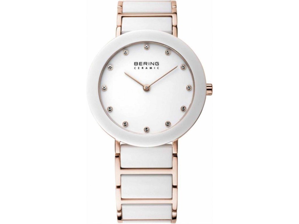 HODINKY BERING WOMEN 11435-766 (35 MM). Typ mechanizmu: QUARTZ. Displej: HODINKY: ANALÓGOVÉ. Materiál puzdra: MATERIÁL: NEHRDZAVEJÚCA OCEĽ. Farba puzdra: FARBA PUZDRA: RUŽOVÁ. Materiál náramku: MATERIÁL NÁRAMKU: KERAMIKA. Farba náramku: FARBA NÁRAMKU: BIELA. Farba ciferníka: BIELA. Typ skla: TYP SKLA: SAPPHIRE. Clousure: SKLENENÉ SKLO: PRESSURE. Priemer ciferníka: dĹŽKA CIFERNÍKA: 35 MM. Ponorný: 5ATM