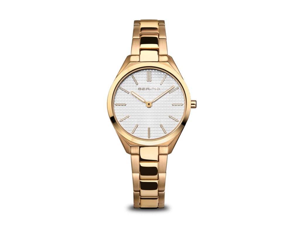 HODINKY BERING WOMEN 17231-734 (31MM). Typ mechanizmu: QUARTZ. Displej: HODINKY: ANALÓGOVÉ. Materiál puzdra: MATERIÁL: NEHRDZAVEJÚCA OCEĽ. Farba puzdra: FARBA: ZLATÁ. Materiál náramku: MATERIÁL NÁRAMKU: NEHRDZAVEJÚCA OCEĽ. Farba náramku: ZLATÁ. Farba ciferníka: FARBA CIFERNÍKA: ŠEDÁ. Typ skla: TYP SKLA: SAPPHIRE. Sklo: TLAK. Priemer ciferníka: dĹŽKA CIFERNÍKA: 31 MM. Ponorný: hĹBKA: 3ATM