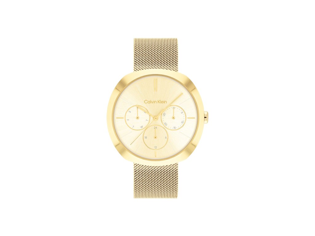 HODINKY CALVIN KLEIN WOMEN 25200339 (38,5CM). Typ mechanizmu: TYP HODINIEK: QUARTZ. Displej: HODINKY: ANALÓGOVÉ. Materiál puzdra: MATERIÁL: NEHRDZAVEJÚCA OCEĽ. Farba puzdra: FARBA: ZLATÁ. Materiál náramku: MATERIÁL NÁRAMKU: NEHRDZAVEJÚCA OCEĽ. Farba náramku: ZLATÁ. Farba ciferníka: ZLATÁ. Typ skla: MINERÁLNE. Sklo: PIN. Priemer ciferníka: dĹŽKA CIFERNÍKA: 38,5 CM. Ponorný: pÔSOBENIE: 3ATM