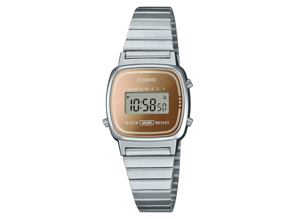 HODINKY CASIO WOMEN LA670WES-4AEF (24MM). Typ mechanizmu: QUARTZ. Displej: DIGITÁLNY. Materiál puzdra: MATERIÁL: NEHRDZAVEJÚCA OCEĽ. Farba puzdra: FARBA PUZDRA: ŠEDÁ. Materiál náramku: MATERIÁL NÁRAMKU: NEHRDZAVEJÚCA OCEĽ. Farba náramku: FARBA NÁRAMKU: ŠEDÁ. Farba ciferníka: HNEDÁ. Typ skla: SKLÍČKO: MINERÁLNE. Clousure: TLAK. Priemer ciferníka: dĹŽKA: 24 MM. Ponorný: NE