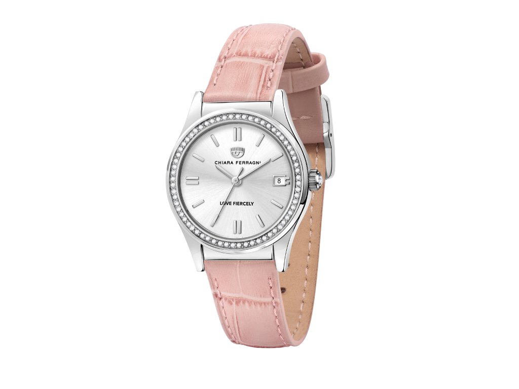 HODINKY CHIARA FERRAGNI WOMEN R1951102503 (32MM). Typ mechanizmu: TYP: QUARTZ. Displej: HODINKY: ANALOGICKÉ. Materiál puzdra: MATERIÁL PUZDRA: OCEĽ. Farba puzdra: FARBA PUZDRA: ŠEDÁ. Materiál náramku: MATERIÁL NÁRAMKU: KOŽA. Farba náramku: FARBA NÁRAMKU: RUŽOVÁ. Farba ciferníka: BIELA. Typ skla: SKLÍČKO: MINERÁLNE. Kľučka: BUCKLE. Priemer ciferníka: dĹŽKA CIFERNÍKA: 32MM. Ponoriteľnosť: 5 ATM