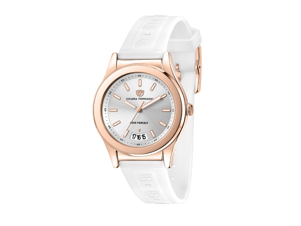 HODINKY CHIARA FERRAGNI WOMEN R1951102504 (36MM). Typ mechanizmu: TYP: QUARTZ. Displej: HODINKY: ANALÓGOVÉ. Materiál puzdra: MATERIÁL PUZDRA: OCEĽ. Farba puzdra: FARBA PUZDRA: RUŽOVÁ. Materiál náramku: MATERIÁL NÁRAMKU: SILIKÓN. Farba náramku: FARBA NÁRAMKU: BIELA. Farba ciferníka: BIELA. Typ skla: MINERÁLNE. Kľučka: BUCKLE. Priemer ciferníka: dĹŽKA CIFERNÍKA: 36MM. Ponoriteľnosť: 5 ATM