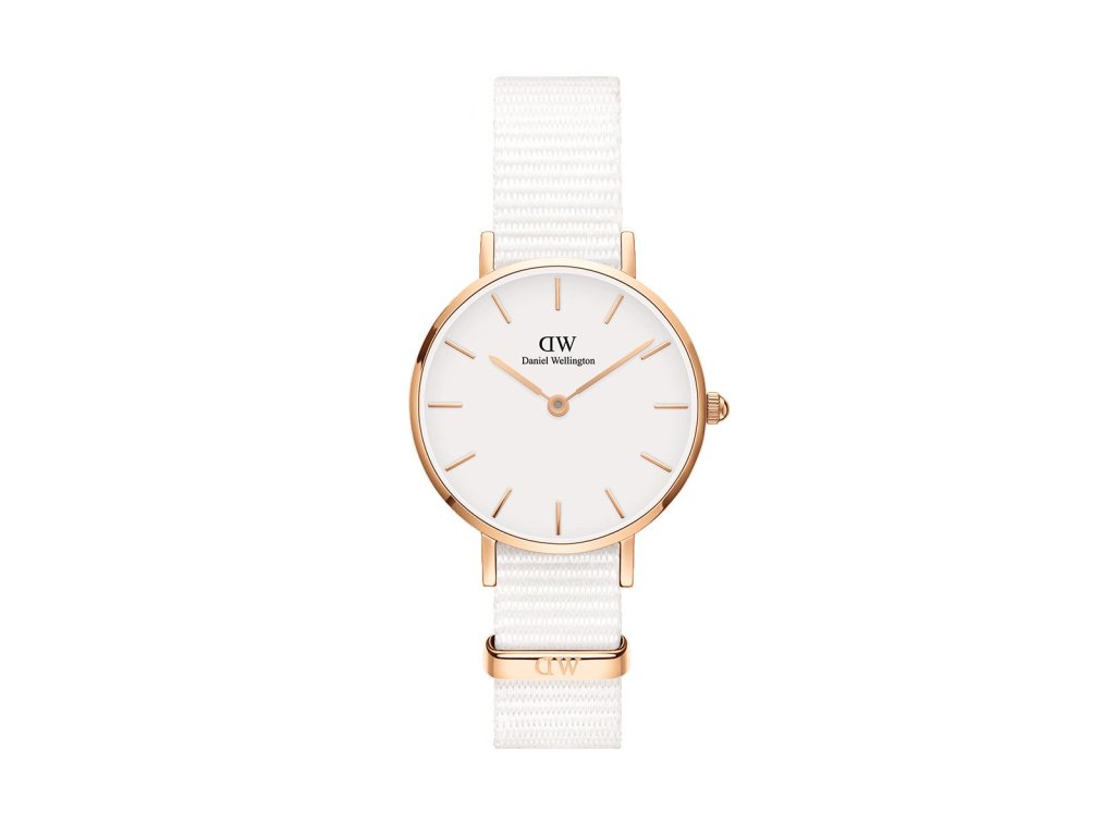 HODINKY DANIEL WELLINGTON WOMEN DW00100313 (28MM). Typ mechanizmu: QUARTZ. Displej: HODINKY: ANALÓGOVÉ. Materiál puzdra: MATERIÁL: NEHRDZAVEJÚCA OCEĽ. Farba puzdra: FARBA PUZDRA: RUŽOVÁ. Materiál náramku: MATERIÁL NÁRAMKU: NYLON. Farba náramku: FARBA NÁRAMKU: BIELA. Farba ciferníka: BIELA. Typ skla: MINERÁLNE. Kľučka: BUCKLE. Priemer ciferníka: dĹŽKA CIFERNÍKA: 28 MM. Ponorný: NE