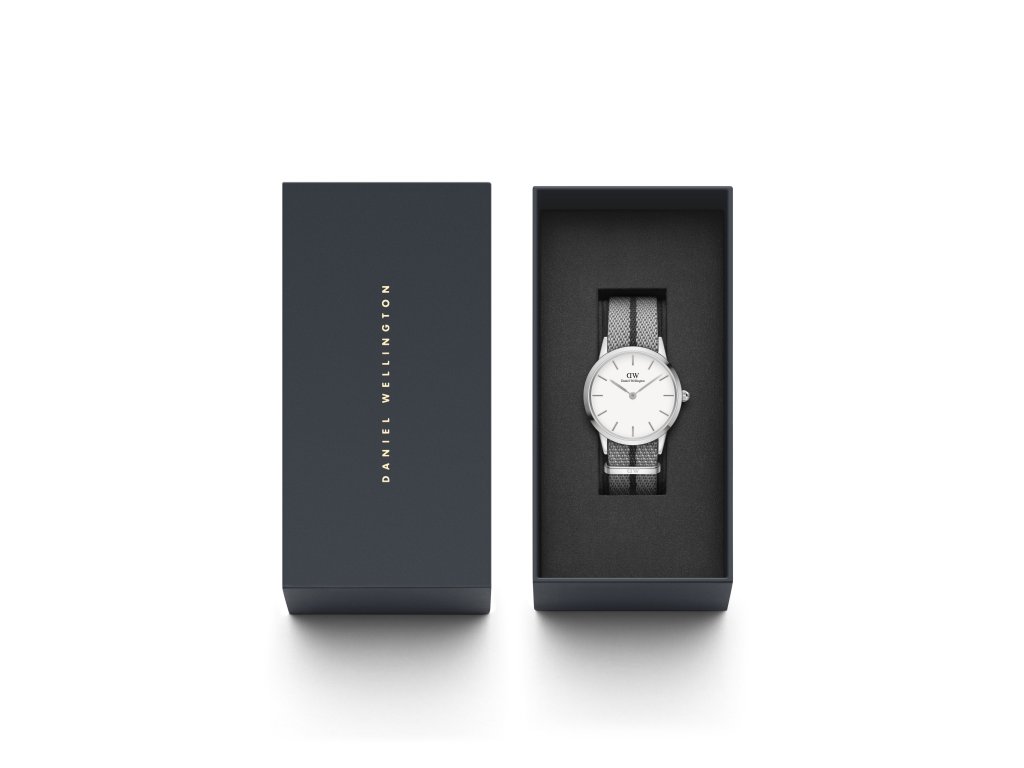 HODINKY DANIEL WELLINGTON WOMEN DW00100679 (26MM). Typ mechanizmu: QUARTZ. Displej: HODINKY: ANALÓGOVÉ. Materiál puzdra: MATERIÁL: NEHRDZAVEJÚCA OCEĽ. Farba puzdra: FARBA PUZDRA: ŠEDÁ. Materiál náramku: MATERIÁL: NYLON. Farba náramku: FARBA NÁRAMKU: ŠEDÁ. Farba ciferníka: BIELA. Typ skla: SKLÍČKO: MINERÁLNE. Kľučka: BUCKLE. Priemer ciferníka: dĹŽKA CIFERNÍKA: 26MM. Ponorný: hĹBKA: 3ATM