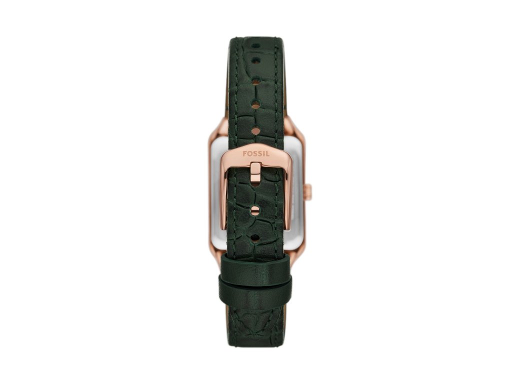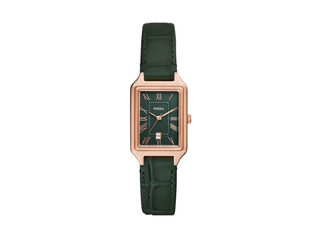 Raquel je skutočnou ikonou inšpirovanou vzormi z archívov spoločnosti Fossil. Spájajú v sebe vintage atmosféru s moderným dizajnom, vďaka čomu sú jedinečným doplnkom na každú príležitosť.Výrazný zelený remienok s krokodílím vzorom z udržateľnej kože dodáva hodinkám osobitý šarmktorá zaujme na prvý pohľad.