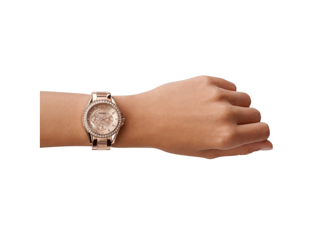 Značka Fossil je jednou z ikon moderného dizajnu -jej príslušenstvo vždy spája aktuálne trendy s nadčasovými koncepciami. Riley osloví všetky ženy, ktoré hľadajú spoľahlivé hodinky, ktoré vyniknú v každodennom aj formálnejšom oblečení.