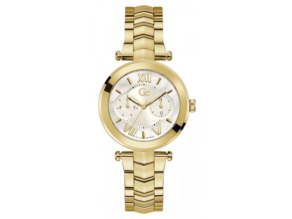 HODINKY GC WOMEN Y92002L1MF (36,5MM). Typ mechanizmu: QUARTZ. Displej: DISPLEJ: ANALOGICKÝ. Materiál puzdra: MATERIÁL: NEHRDZAVEJÚCA OCEĽ. Farba puzdra: FARBA: ZLATÁ. Materiál náramku: MATERIÁL NÁRAMKU: NEHRDZAVEJÚCA OCEĽ. Farba náramku: ZLATÁ. Farba ciferníka: BIELA. Typ skla: SKLÍČKO: MINERÁLNE. Clousure: BUTTERFLY. Priemer ciferníka: dĹŽKA CIFERNÍKA: 36,5 MM. Ponorný: 10ATM