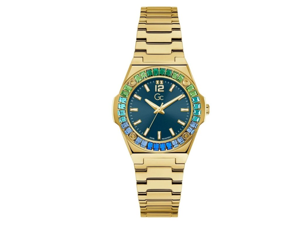 HODINKY GC WOMEN Z34007L7MF (34MM). Typ mechanizmu: QUARTZ. Displej: HODINKY: ANALOGICKÉ. Materiál puzdra: MATERIÁL: NEHRDZAVEJÚCA OCEĽ. Farba puzdra: FARBA: ZLATÁ. Materiál náramku: MATERIÁL NÁRAMKU: NEHRDZAVEJÚCA OCEĽ. Farba náramku: ZLATÁ. Farba ciferníka: MODRÁ. Typ skla: SKLÍČKO: MINERÁLNE. Clousure: TLAK. Priemer ciferníka: dĹŽKA CIFERNÍKA: 34 MM. Ponorný: 10ATM