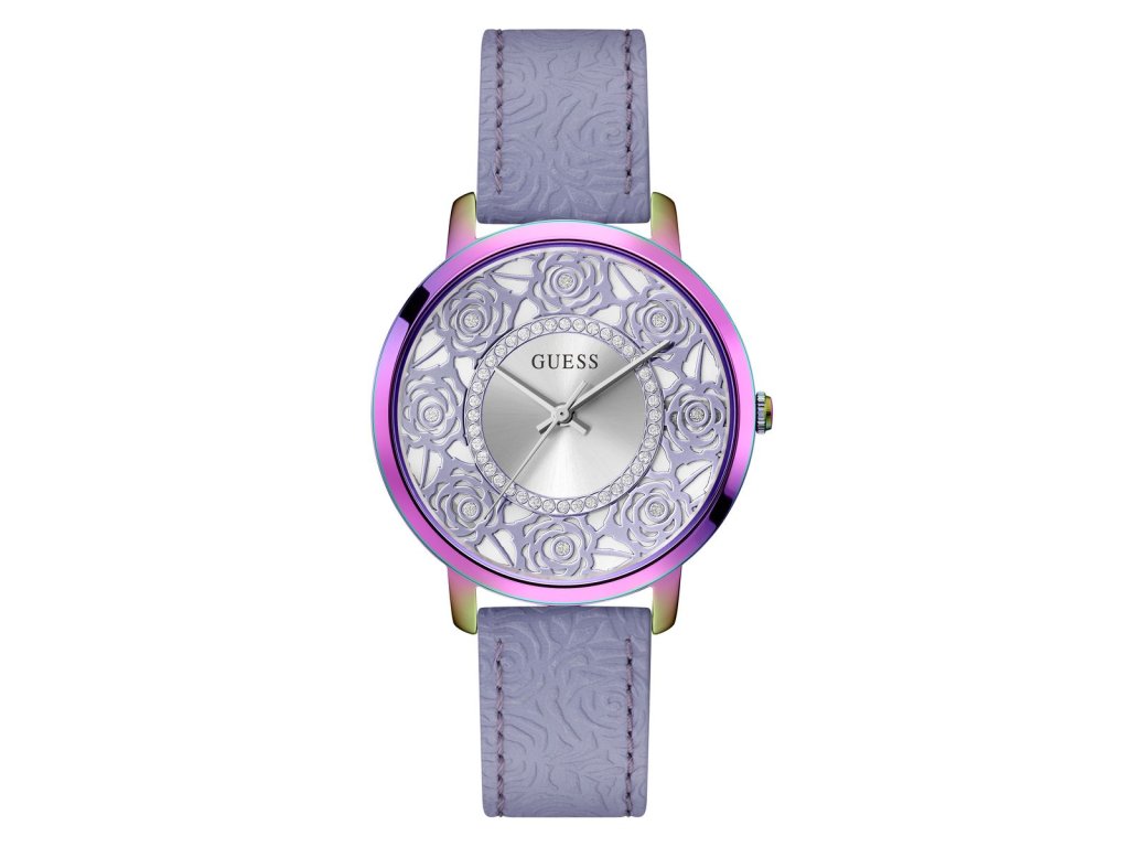 HODINKY GUESS WOMEN GW0529L4 (40MM). Typ mechanizmu: QUARTZ. Displej: HODINKY: ANALÓGOVÉ. Materiál puzdra: MATERIÁL: NEHRDZAVEJÚCA OCEĽ. Farba puzdra: FARBA PUZDRA: MULTICOLORED. Materiál náramku: MATERIÁL NÁRAMKU: KOŽA. Farba náramku: FARBA NÁRAMKU: FIALOVÁ. Farba ciferníka: FARBA CIFERNÍKA: FIALOVÁ. Typ skla: MINERÁLNE. Clousure: BUCKLE. Priemer ciferníka: dĹŽKA CIFERNÍKA: 40MM. Ponorný: NE