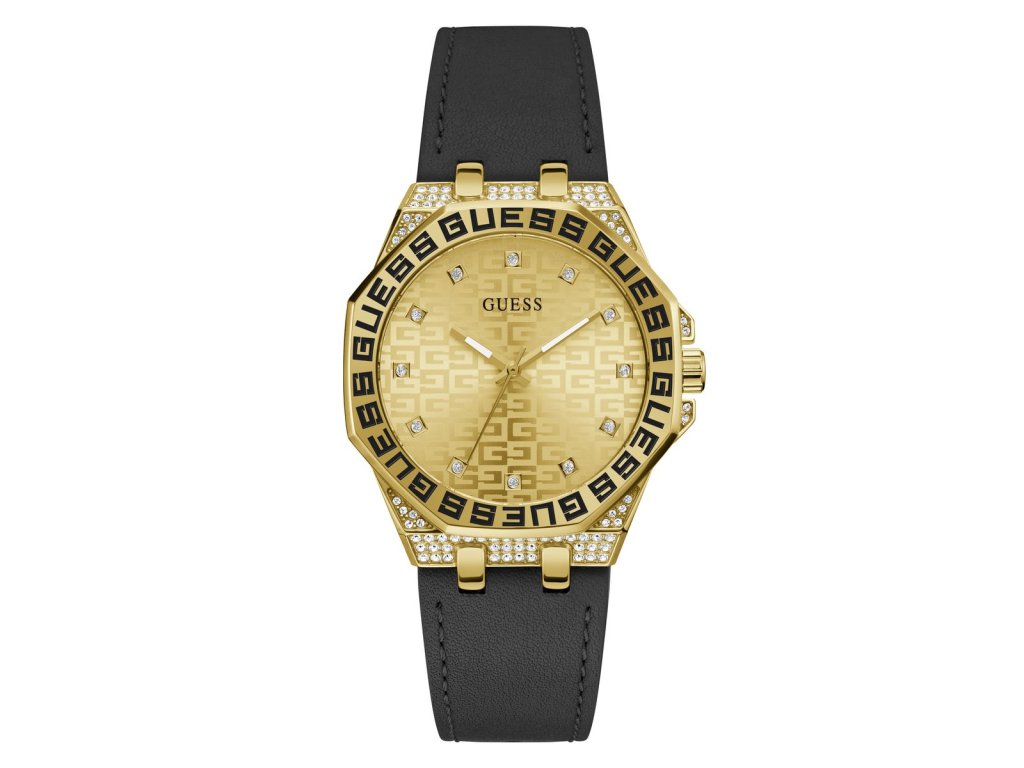 HODINKY GUESS WOMEN GW0547L3 (38MM). Typ mechanizmu: QUARTZ. Displej: HODINKY: ANALÓGOVÉ. Materiál puzdra: MATERIÁL: NEHRDZAVEJÚCA OCEĽ. Farba puzdra: FARBA: ZLATÁ. Materiál náramku: MATERIÁL NÁRAMKU: KOŽA. Farba náramku: FARBA NÁRAMKU: ČIERNA. Farba ciferníka: FARBA CIFERNÍKA: ZLATÁ. Typ skla: SKLÍČKO: MINERÁLNE. Kľučka: BUCKLE. Priemer ciferníka: dĹŽKA CIFERNÍKA: 38MM. Ponorný: 5ATM