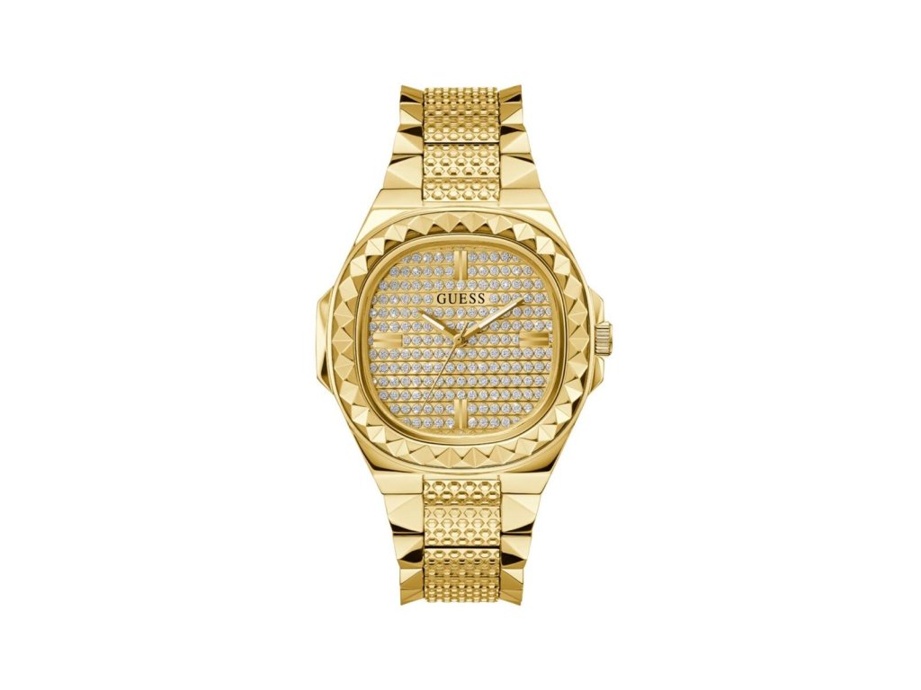 HODINKY GUESS WOMEN GW0622G1 (42MM). Typ mechanizmu: QUARTZ. Displej: HODINKY: ANALÓGOVÉ. Materiál puzdra: MATERIÁL: NEHRDZAVEJÚCA OCEĽ. Farba puzdra: FARBA: ZLATÁ. Materiál náramku: MATERIÁL NÁRAMKU: NEHRDZAVEJÚCA OCEĽ. Farba náramku: ZLATÁ. Farba ciferníka: ZLATÁ. Typ skla: MINERÁLNE. Sklo: TLAK. Priemer ciferníka: dĹŽKA CIFERNÍKA: 42MM. Ponorný: 5ATM