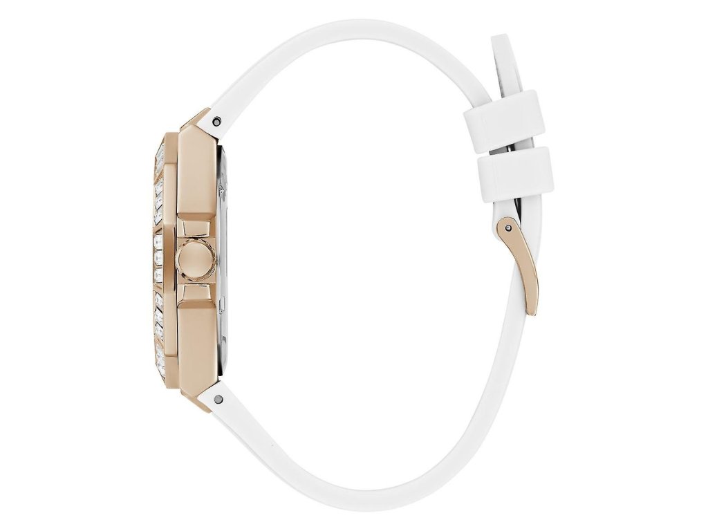 HODINKY GUESS WOMEN GW0695L3 (39MM). Typ mechanizmu: QUARTZ. Displej: HODINKY: ANALÓGOVÉ. Materiál puzdra: MATERIÁL: NEHRDZAVEJÚCA OCEĽ. Farba puzdra: FARBA PUZDRA: RUŽOVÁ. Materiál náramku: MATERIÁL NÁRAMKU: SILIKÓN. Farba náramku: FARBA NÁRAMKU: BIELA. Farba ciferníka: FAREBNOSŤ CIFERNÍKA: VÍCFAREBNÁ. Typ skla: SKLÍČKO: MINERÁLNE. Kľučka: BUCKLE. Priemer ciferníka: dĹŽKA CIFERNÍKA: 39 MM. Ponoriteľnosť: 5ATM