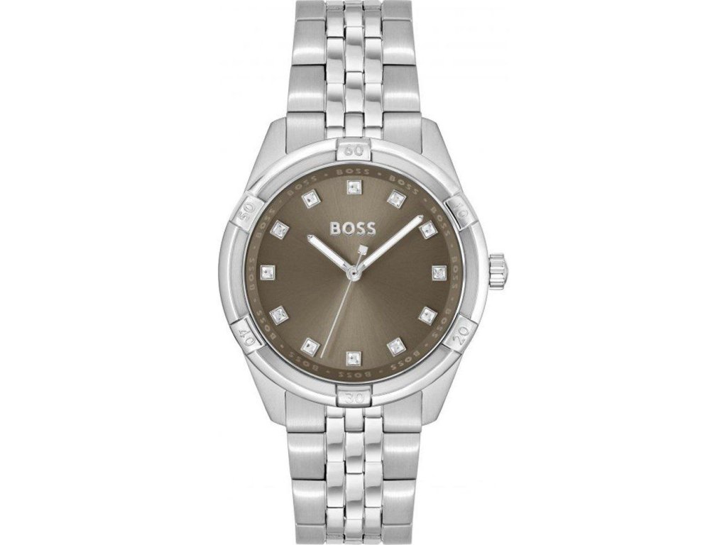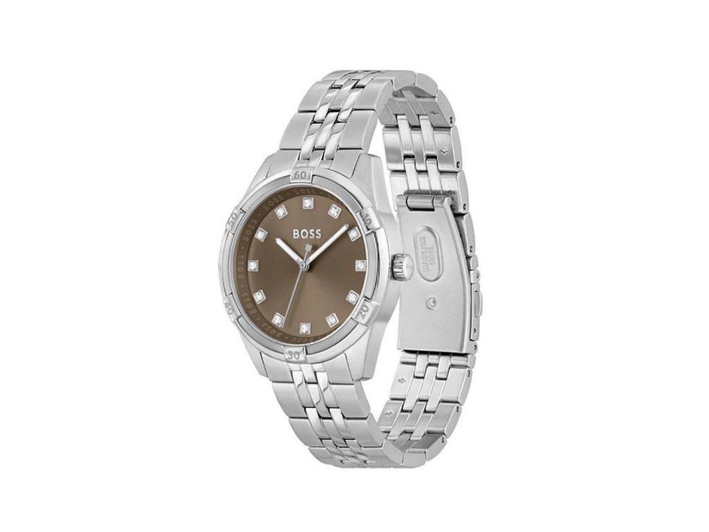 HODINKY HUGO BOSS WOMEN 1502699 (36MM). Typ mechanizmu: QUARTZ. Displej: HODINKY: ANALOGICKÉ. Materiál puzdra: MATERIÁL: NEHRDZAVEJÚCA OCEĽ. Farba puzdra: FARBA PUZDRA: ŠEDÁ. Materiál náramku: MATERIÁL NÁRAMKU: NEHRDZAVEJÚCA OCEĽ. Farba náramku: FARBA NÁRAMKU: ŠEDÁ. Farba ciferníka: HNEDÁ. Typ skla: SKLÍČKO: MINERÁLNE. Clousure: BUTTERFLY. Priemer ciferníka: dĹŽKA CIFERNÍKA: 36 MM. Ponorný: NE