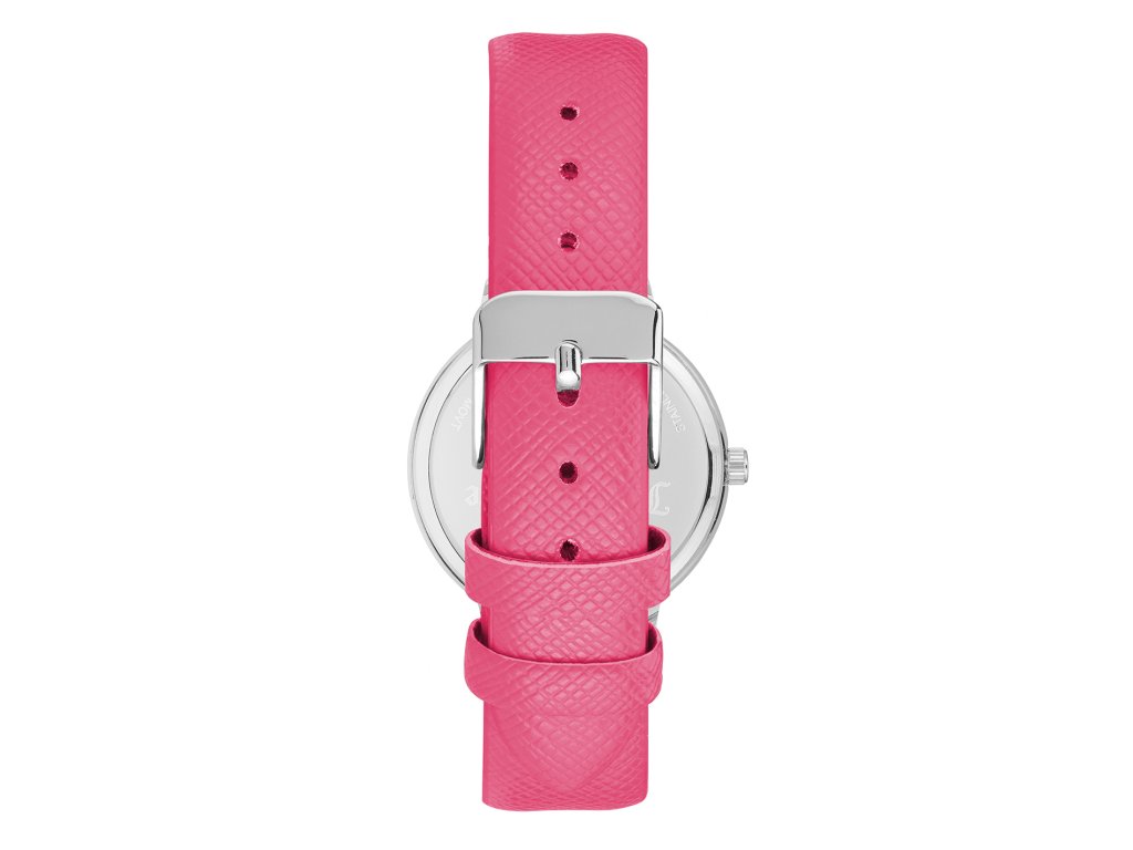 HODINKY JUICY COUTURE WOMEN JC1235SVHP (38 MM). Typ mechanizmu: QUARTZ. Displej: HODINKY: ANALÓGOVÉ. Materiál puzdra: MATERIÁL PUZDRA: KOV. Farba puzdra: STRIEBORNÁ: FARBA PUZDRA: STRIEBORNÁ. Materiál náramku: MATERIÁL: POLIPRIEL. Farba náramku: FARBA NÁRAMKU: RUŽOVÁ. Farba ciferníka: FARBA NÁRAMKU: RUŽOVÁ. Typ skla: MINERÁLNE. Kľučka: BUCKLE. Priemer ciferníka: dĹŽKA CIFERNÍKA: 38 MM. Ponorný: NE