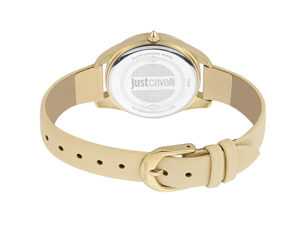 HODINKY JUST CAVALLI WOMEN JC1L210L0015 (32MM). Typ mechanizmu: QUARTZ. Displej: HODINKY: ANALOGICKÉ. Materiál puzdra: MATERIÁL: NEHRDZAVEJÚCA OCEĽ. Farba puzdra: FARBA: ZLATÁ. Materiál náramku: MATERIÁL NÁRAMKU: KOŽA. Farba náramku: FARBA NÁRAMKU: BEIGE. Farba ciferníka: FARBA CIFERNÍKA: ŠEDÁ. Typ skla: SKLÍČKO: MINERÁLNE. Kľučka: BUCKLE. Priemer ciferníka: dĹŽKA CIFERNÍKA: 32 MM. Ponoriteľnosť: 5 ATM