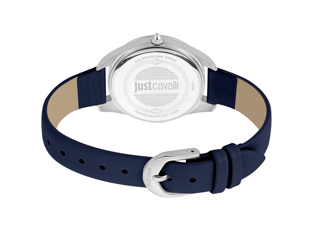 HODINKY JUST CAVALLI WOMEN JC1L210L0115 (32MM). Typ mechanizmu: QUARTZ. Displej: HODINKY: ANALOGICKÉ. Materiál puzdra: MATERIÁL: NEHRDZAVEJÚCA OCEĽ. Farba puzdra: FARBA PUZDRA: ŠEDÁ. Materiál náramku: MATERIÁL NÁRAMKU: KOŽA. Farba náramku: FARBA NÁRAMKU: MODRÁ. Farba ciferníka: FAREBNOSŤ CIFERNÍKA: VÍCFAREBNÁ. Typ skla: SKLÍČKO: MINERÁLNE. Kľučka: BUCKLE. Priemer ciferníka: dĹŽKA CIFERNÍKA: 32 MM. Ponoriteľnosť: 5 ATM