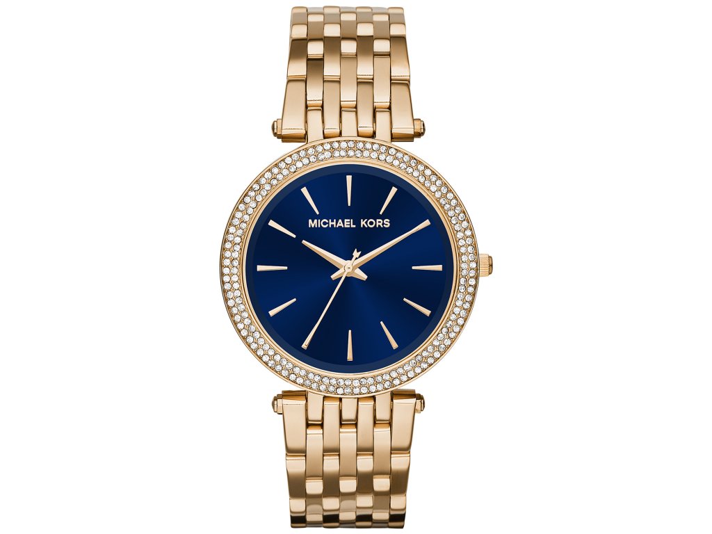HODINKY MICHAEL KORS WOMEN MK3406 (39MM). Typ mechanizmu: TYP HODINIEK: QUARTZ. Displej: HODINKY: ANALÓGOVÉ. Materiál puzdra: MATERIÁL: NEHRDZAVEJÚCA OCEĽ. Farba puzdra: ZLATÁ. Materiál náramku: MATERIÁL NÁRAMKU: OCEĽ. Farba náramku: FARBA NÁRAMKU: ZLATÁ. Farba ciferníka: MODRÁ. Typ skla: SKLÍČKO: MINERÁLNE. Clousure: Sklíčko: Drop -down. Priemer ciferníka: dĹŽKA CIFERNÍKA: 39 MM. Ponorný: 5ATM