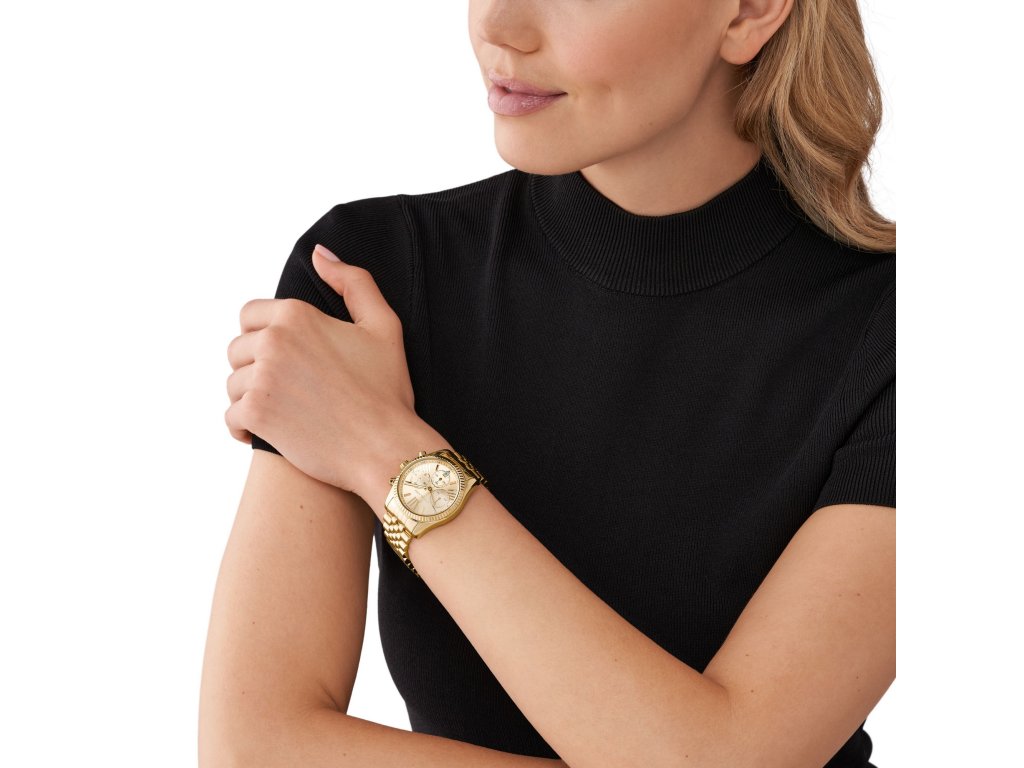 Dámske hodinky Michael Kors Lexington kombinujú klasiku s moderným šarmom a pôsobivým dizajnom. Zlatá povrchová úprava podčiarkuje luxusný vzhľad, zatiaľ čo chronograf a ukazovateľ dátumu zaručujú, že štýl ide ruka v ruke s funkčnosťou. Ideálne pre ženy, ktoré sa chcú obliekať podľa módy - a zároveň mať všetko pod kontrolou.