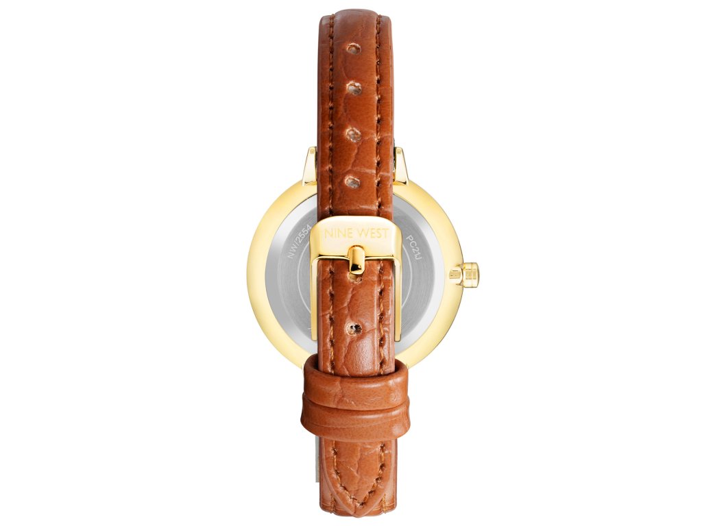 HODINKY NINE WEST WOMEN NW-2554CHHY (34MM). Typ mechanizmu: QUARTZ. Displej: HODINKY: ANALÓGOVÉ. Materiál puzdra: MATERIÁL PUZDRA: KOV. Farba puzdra: ZLATÁ. Materiál náramku: MATERIÁL NÁRAMKU: KOŽA. Farba náramku: FARBA NÁRAMKU: HNEDÁ. Farba ciferníka: FARBA CIFERNÍKA: ŠEDÁ. Typ skla: SKLÍČKO: MINERÁLNE. Kľučka: BUCKLE. Priemer ciferníka: dĹŽKA CIFERNÍKA: 34MM. Ponorný: NE