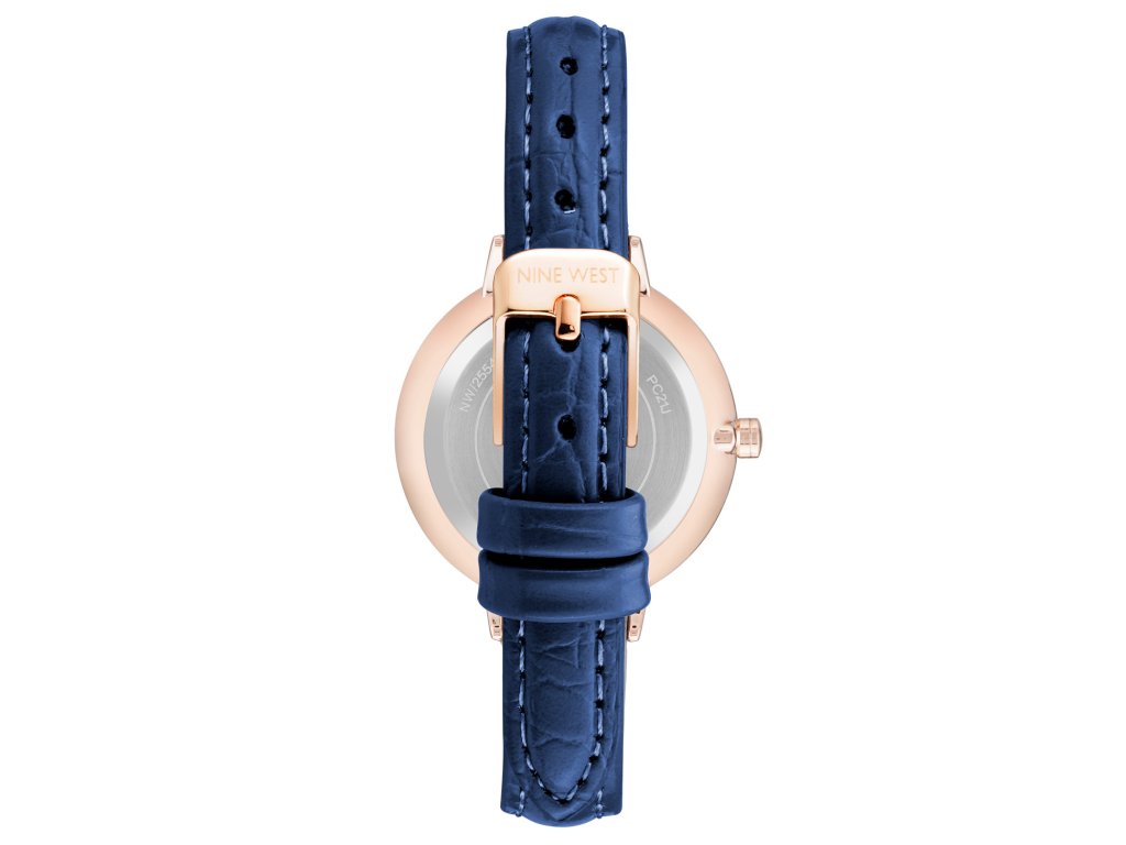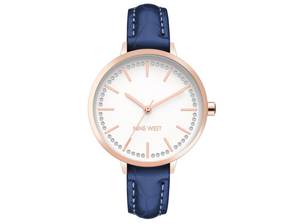 HODINKY NINE WEST WOMEN NW-2554RGNV (34MM). Typ mechanizmu: QUARTZ. Displej: HODINKY: ANALÓGOVÉ. Materiál puzdra: MATERIÁL PUZDRA: KOV. Farba puzdra: FARBA PUZDRA: RUŽOVÁ. Materiál náramku: MATERIÁL NÁRAMKU: KOŽA. Farba náramku: FARBA NÁRAMKU: MODRÁ. Farba ciferníka: BIELA. Typ skla: SKLÍČKO: MINERÁLNE. Kľučka: BUCKLE. Priemer ciferníka: dĹŽKA CIFERNÍKA: 34MM. Ponorný: NE