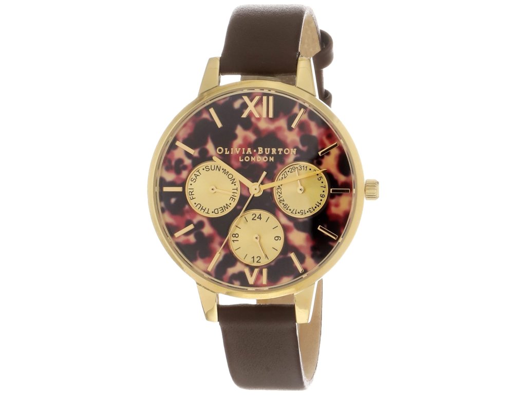 HODINKY OLIVIA BURTON WOMEN OB16CG95 (34MM). Typ mechanizmu: TYP HODINIEK: QUARTZ. Displej: HODINKY: ANALÓGOVÉ. Materiál puzdra: MATERIÁL: NEHRDZAVEJÚCA OCEĽ. Farba puzdra: FARBA: ZLATÁ. Materiál náramku: MATERIÁL NÁRAMKU: KOŽA. Farba náramku: FARBA NÁRAMKU: HNEDÁ. Farba ciferníka: FAREBNOSŤ CIFERNÍKA: MULTICOLORED. Typ skla: SKLÍČKO: MINERÁLNE. Kľučka: BUCKLE. Priemer ciferníka: dĹŽKA CIFERNÍKA: 34 MM. Ponorný: NE