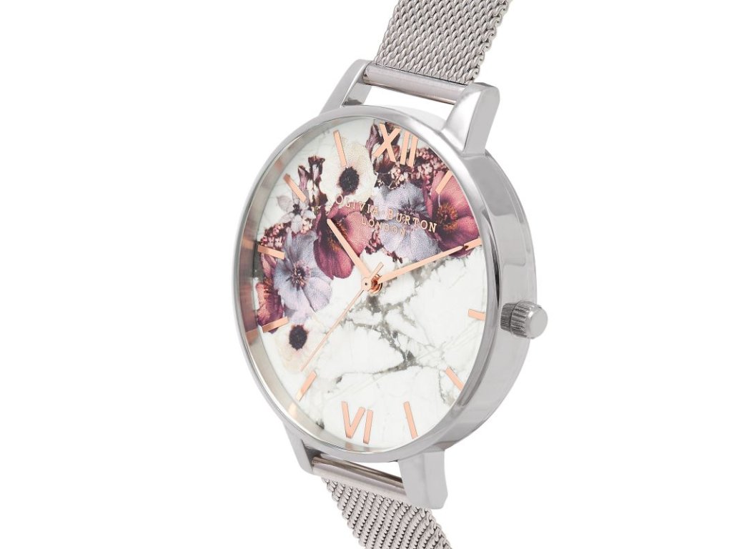 HODINKY OLIVIA BURTON WOMEN OB16MF09 (38 MM). Typ mechanizmu: QUARTZ. Displej: HODINKY: ANALÓGOVÉ. Materiál puzdra: MATERIÁL: NEHRDZAVEJÚCA OCEĽ. Farba puzdra: STRIEBORNÁ: FARBA PUZDRA: STRIEBORNÁ. Materiál náramku: MATERIÁL NÁRAMKU: OCEĽ. Farba náramku: STRIEBORNÁ FARBA NÁRAMKU. Farba ciferníka: BIELA. Typ skla: SKLÍČKO: MINERÁLNE. Sklo: posuvné. Priemer ciferníka: dĹŽKA CIFERNÍKA: 38 MM. Ponoriteľnosť: 1 ATM