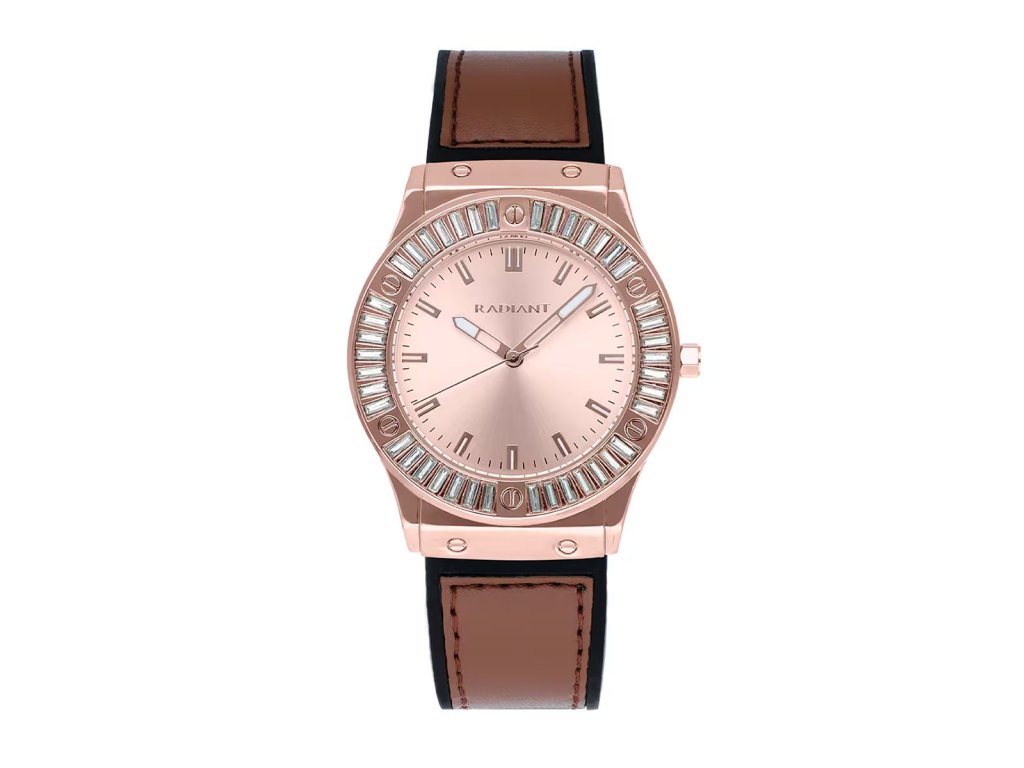 HODINKY RADIANT WOMEN RA633203 (36MM). Typ mechanizmu: QUARTZ. Displej: HODINKY: ANALOGICKÉ. Materiál puzdra: MATERIÁL PUZDRA: KOV. Farba puzdra: FARBA PUZDRA: RUŽOVÁ. Materiál náramku: MATERIÁL NÁRAMKU: SILIKÓN. Farba náramku: FARBA NÁRAMKU: HNEDÁ. Farba ciferníka: FARBA CIFERNÍKA: RUŽOVÁ. Typ skla: SKLÍČKO: MINERÁLNE. Kľučka: BUCKLE. Priemer ciferníka: dĹŽKA CIFERNÍKA: 36MM. Ponorný: NE