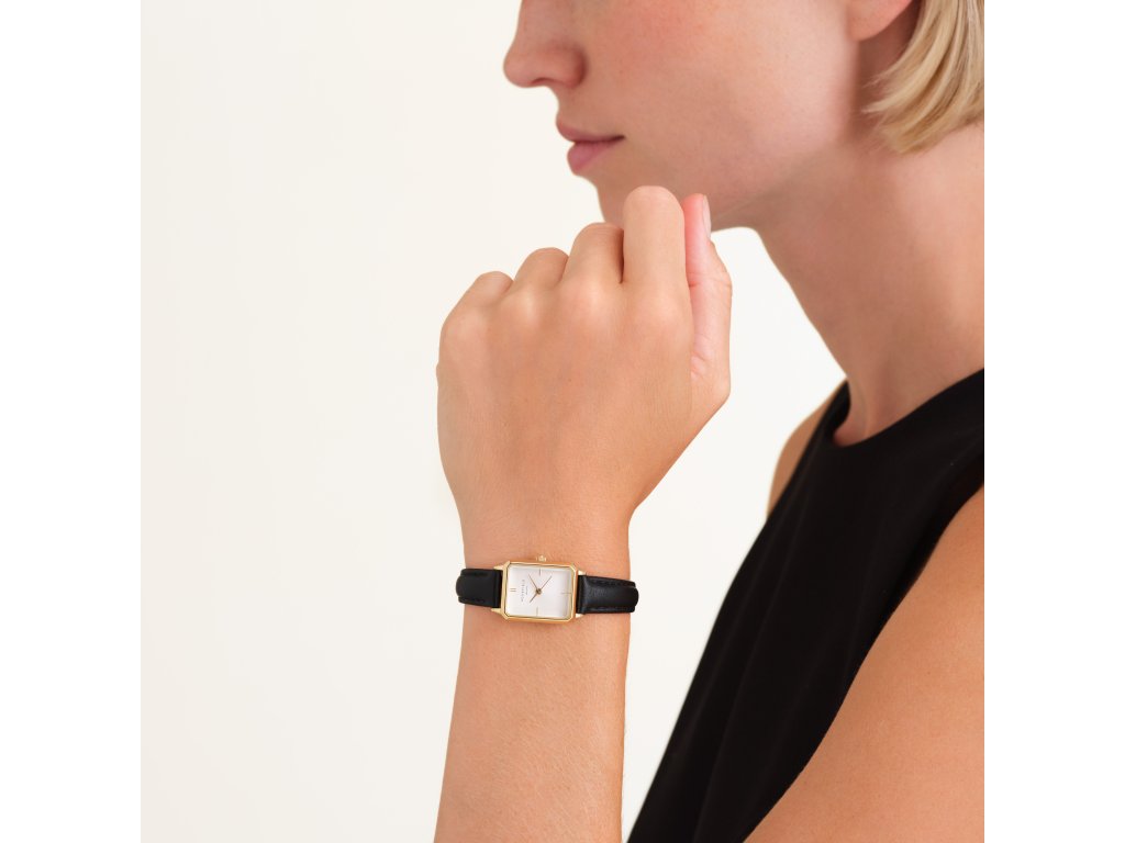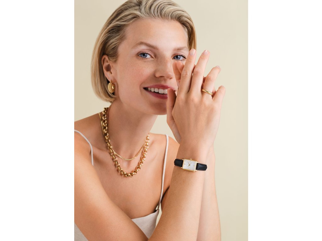 Dámske kožené hodinky Rosefield Octagon XS Black nesú v sebe estetiku 20. rokov minulého storočia, keď na módnej scéne vládli čisté línie a geometria.Osemuholníkové puzdro v zlatom odtieni odkazuje na štýl art deco a dodáva tomuto modelu nezameniteľný vizuálny podpis.