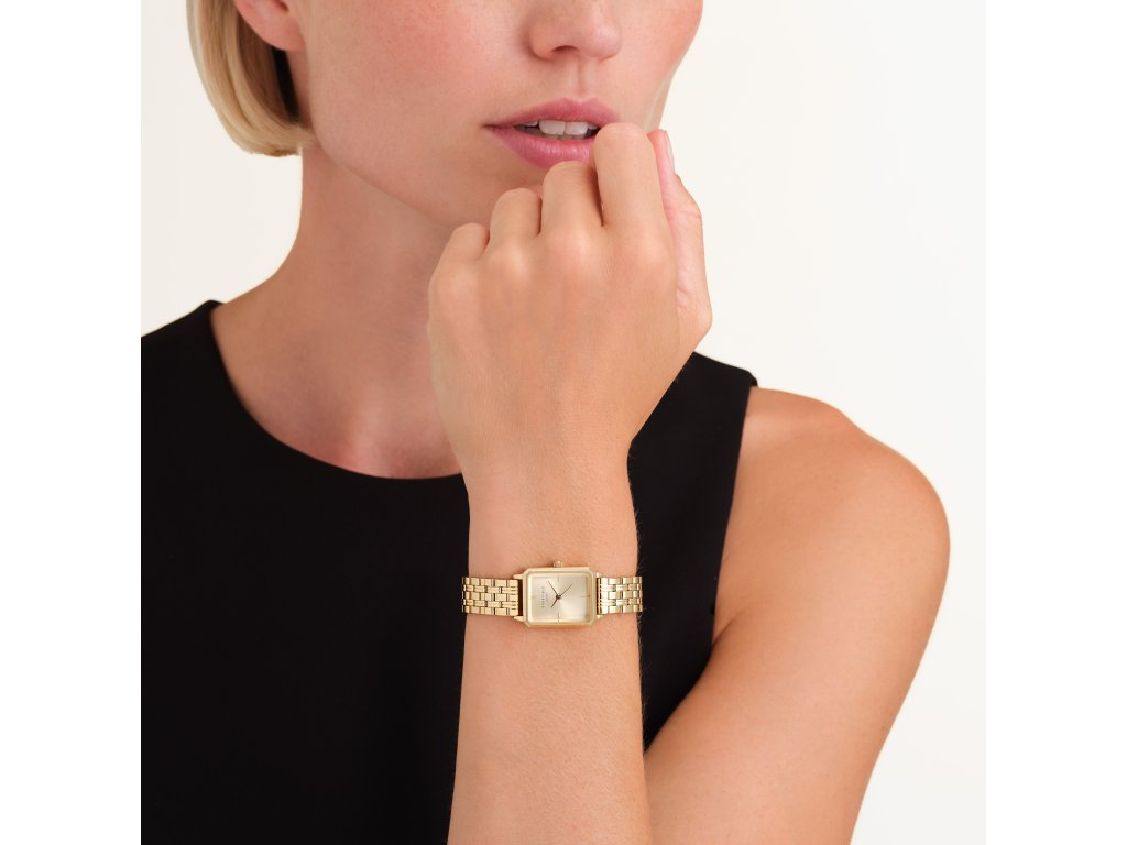 Dámske hodinky Rosefield Octagon XS Champagne sú poctou elegantnému štýlu Art Deco - dizajnu, ktorý sa vyznačoval ladnými líniami, leskom kovu a dokonalou symetriou.Jednofarebný zlatý dizajn vytvára luxusný, ale nenáročný vzhľad, ktorý pôsobí nadčasovo a sebaisto.