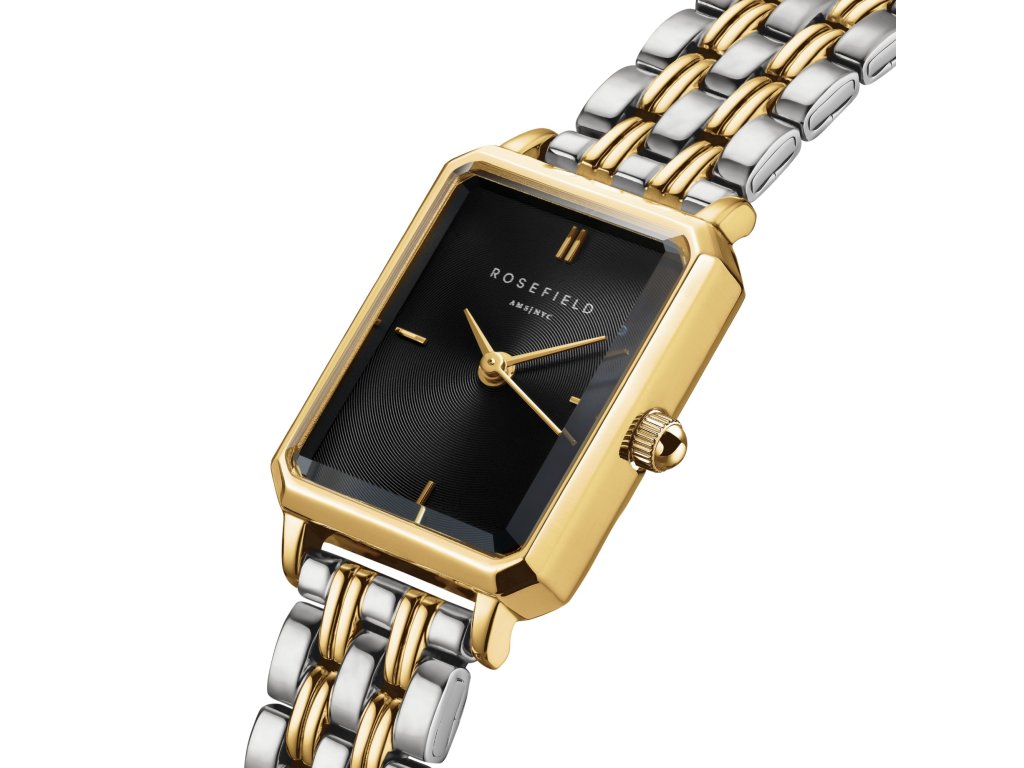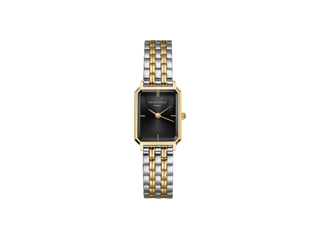 Dámske hodinky Rosefield Octagon XS Black Duotone spájajú nadčasový štýl s jemným odkazom na estetiku art deco 20. rokov 20. storočia.