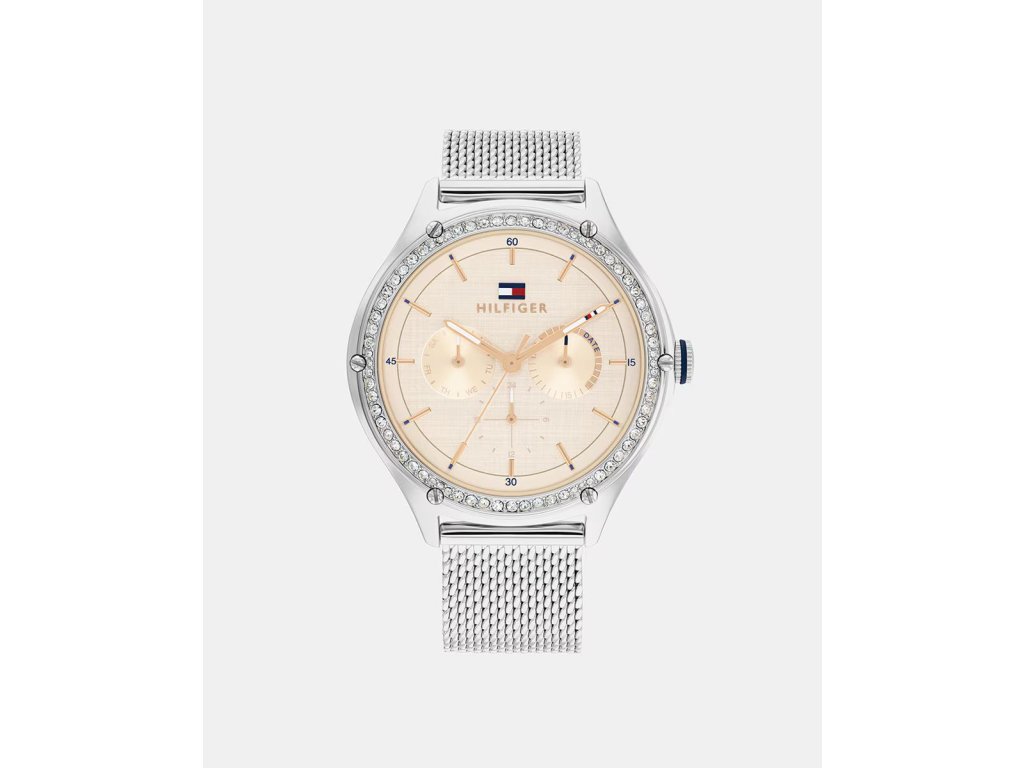 HODINKY TOMMY HILFIGER WOMEN 1782654 (40MM). Typ mechanizmu: TYP: QUARTZ. Displej: TYP: ANALÓGOVÝ. Materiál puzdra: MATERIÁL: NEHRDZAVEJÚCA OCEĽ. Farba puzdra: FARBA PUZDRA: ŠEDÁ. Materiál náramku: MATERIÁL NÁRAMKU: NEHRDZAVEJÚCA OCEĽ. Farba náramku: FARBA NÁRAMKU: ŠEDÁ. Farba ciferníka: ZLATÁ. Typ skla: SKLÍČKO: MINERÁLNE. Sklo: DOPLNITEĽNÉ. Priemer ciferníka: dĹŽKA CIFERNÍKA: 40 MM. Ponorný:
