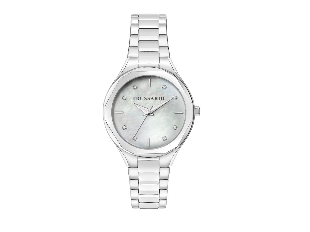 HODINKY TRUSSARDI WOMEN R2453157502 (32MM). Typ mechanizmu: QUARTZ. Displej: TYP: ANALÓGOVÝ. Materiál puzdra: MATERIÁL PUZDRA: OCEĽ. Farba puzdra: FARBA PUZDRA: ŠEDÁ. Materiál náramku: MATERIÁL: NEHRDZAVEJÚCA OCEĽ. Farba náramku: FARBA NÁRAMKU: ŠEDÁ. Farba ciferníka: FARBA NÁRAMKU: ŠEDÁ. Typ skla: SKLÍČKO: MINERÁLNE. Sklo: SKLENENÉ SKLO: FOLD-OUT. Priemer ciferníka: dĹŽKA CIFERNÍKA: 32 MM. Ponoriteľnosť: 5 ATM