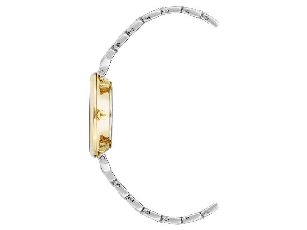 Moderné hodinky Anne Klein AK/2159NVTTočarí kombináciou zlatého a strieborného náramku a tmavomodrého ciferníka s rímskymi číslicamičo celku dodáva hĺbku a štýl. Ideálne pre ženy, ktoré oceňujú eleganciu a všestrannosť v každom detaile.