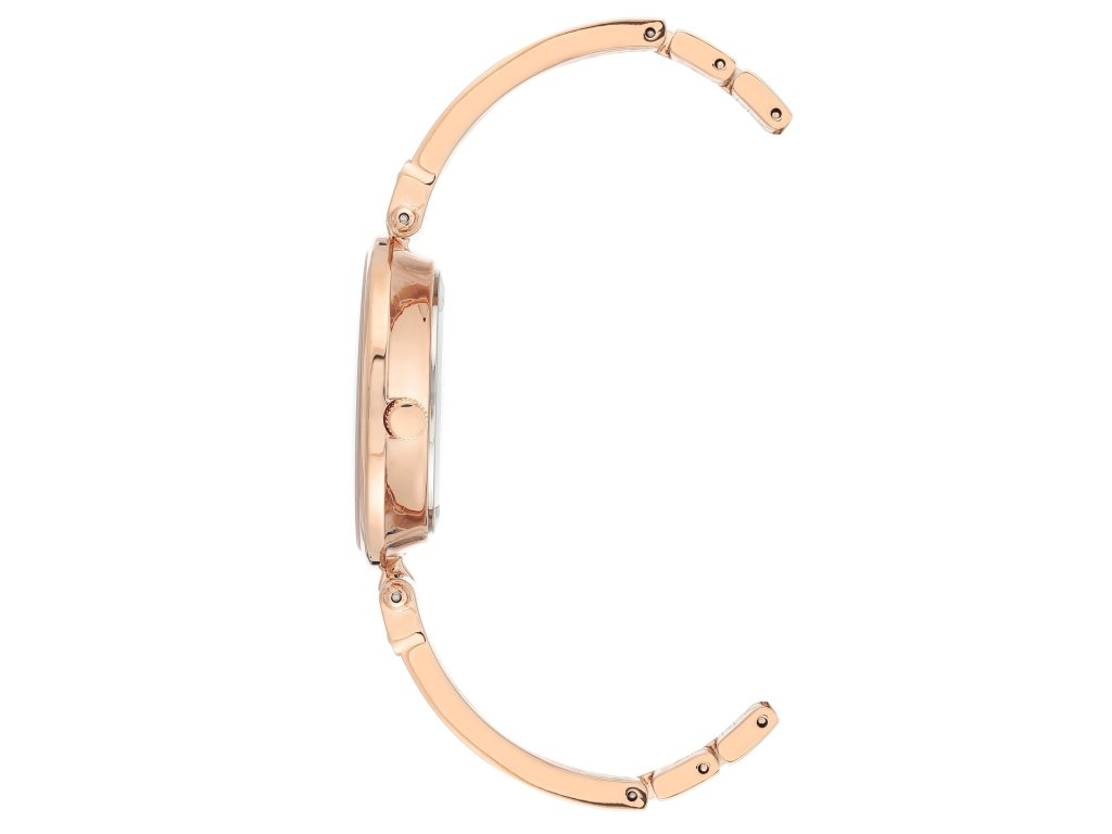 Hodinky Anne Klein v jednotnom tóne ružového zlata zaujmú svojou čistotou a ženským šarmom.Číselník zdobený diamantom na 12. hodine dodáva modelu jemný lesk podobný šperku.